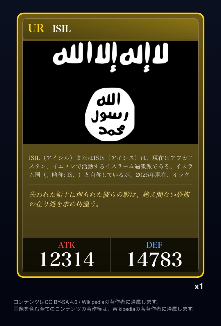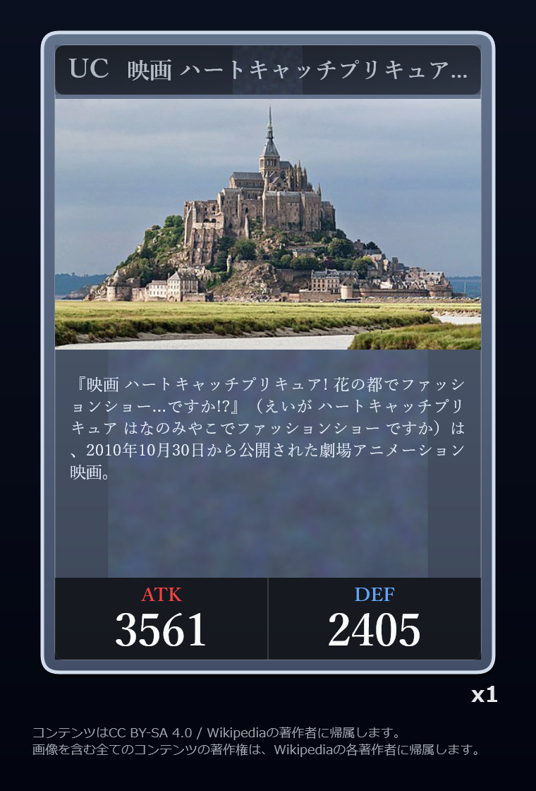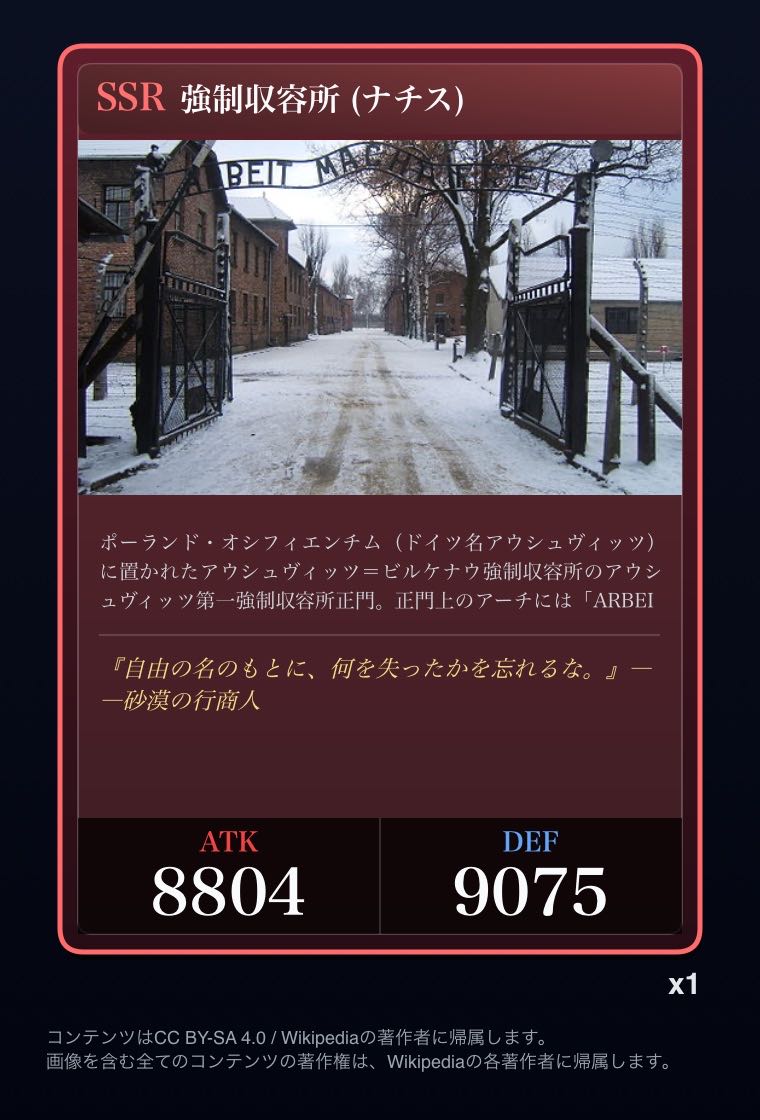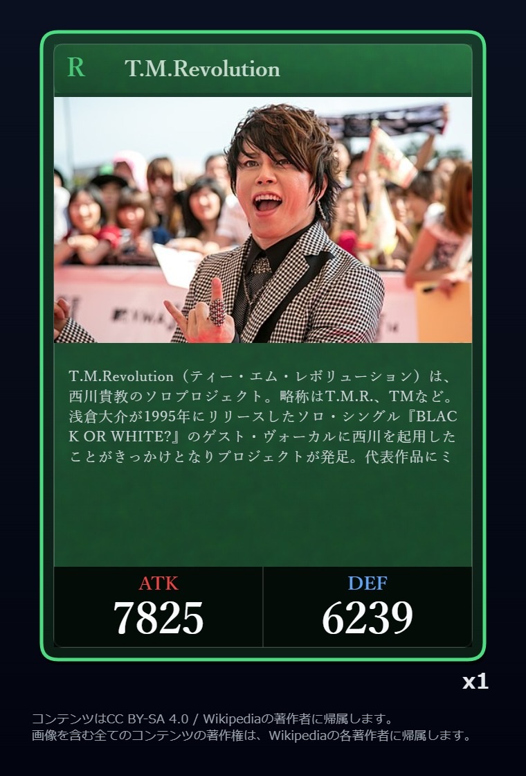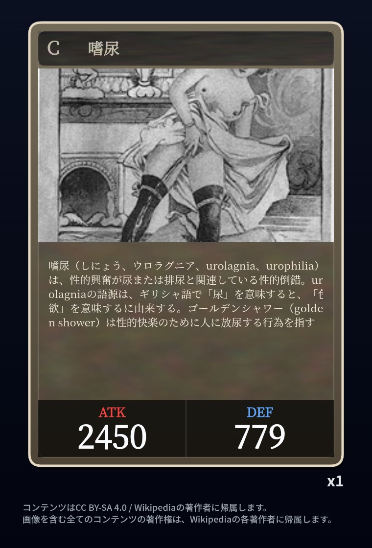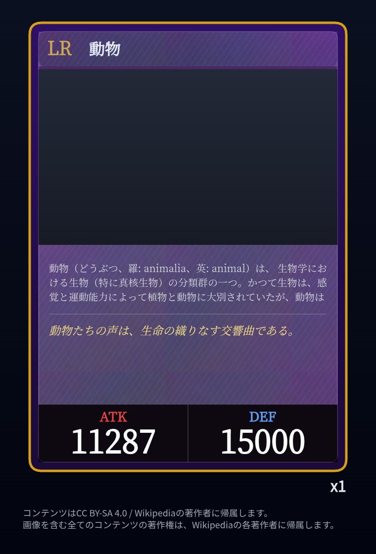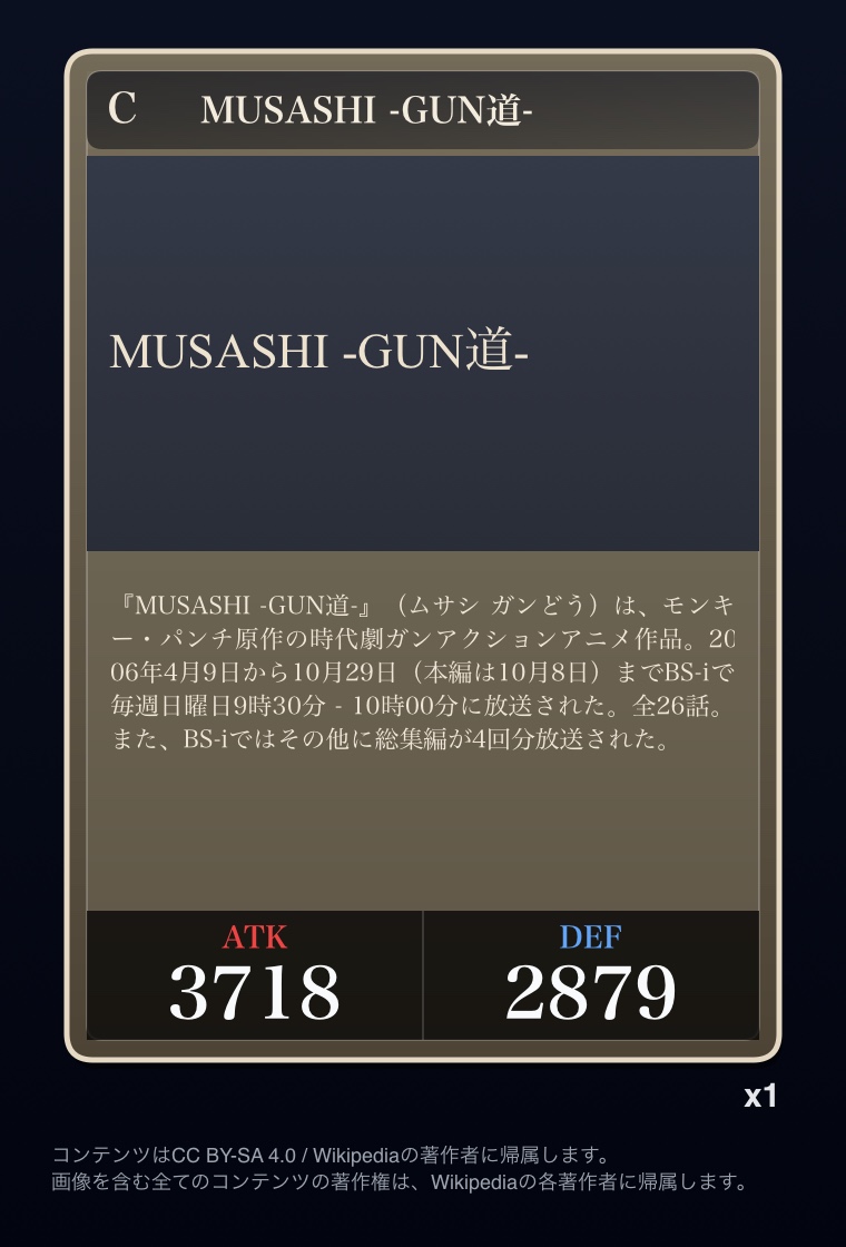 | … | 2326/03/07(土)00:32:00No.1408351352+記事が気になってWikipediaを開いてしまうカードは良いカード |