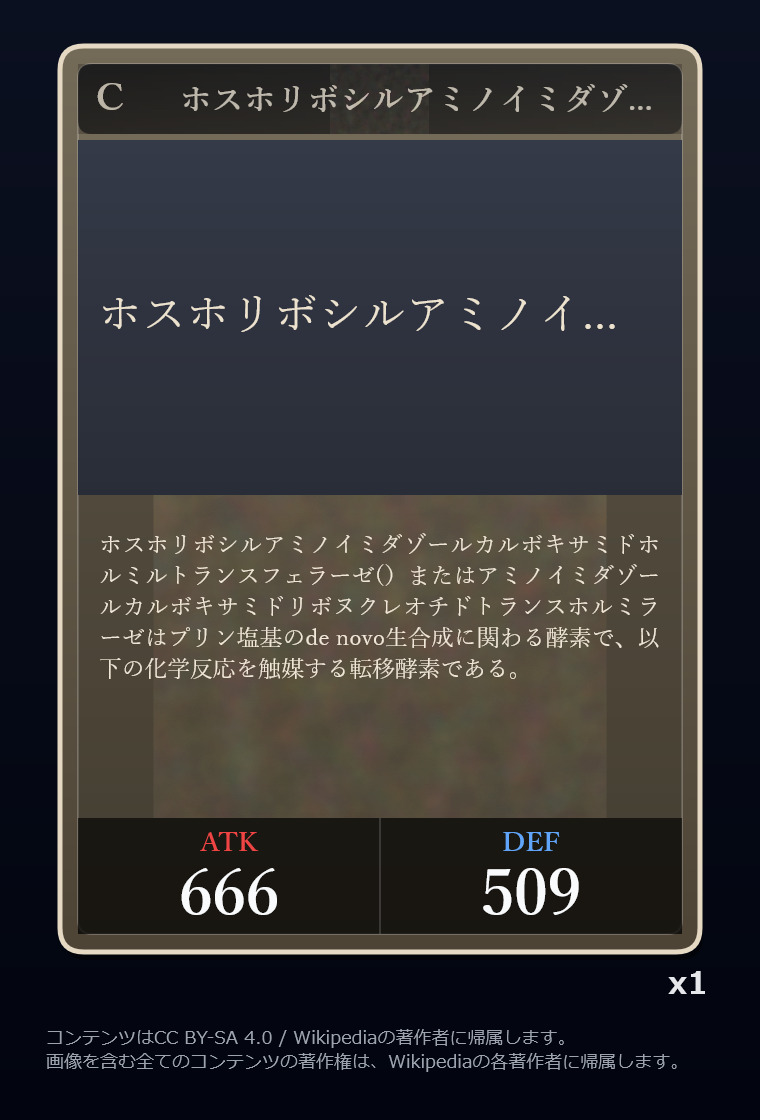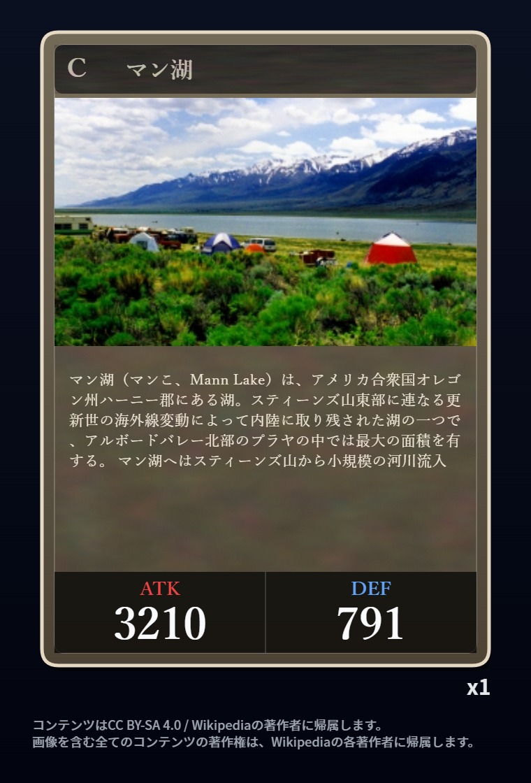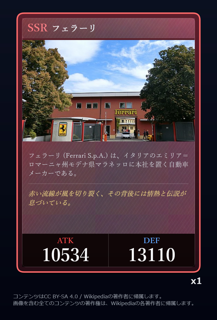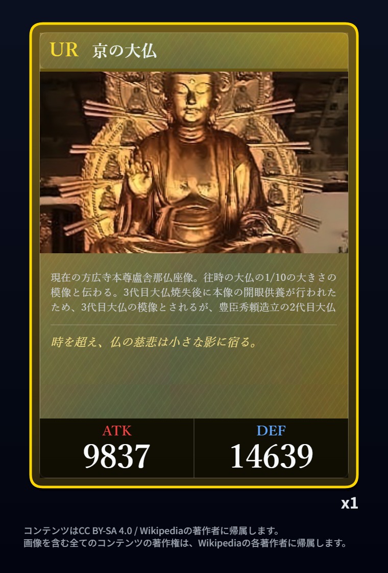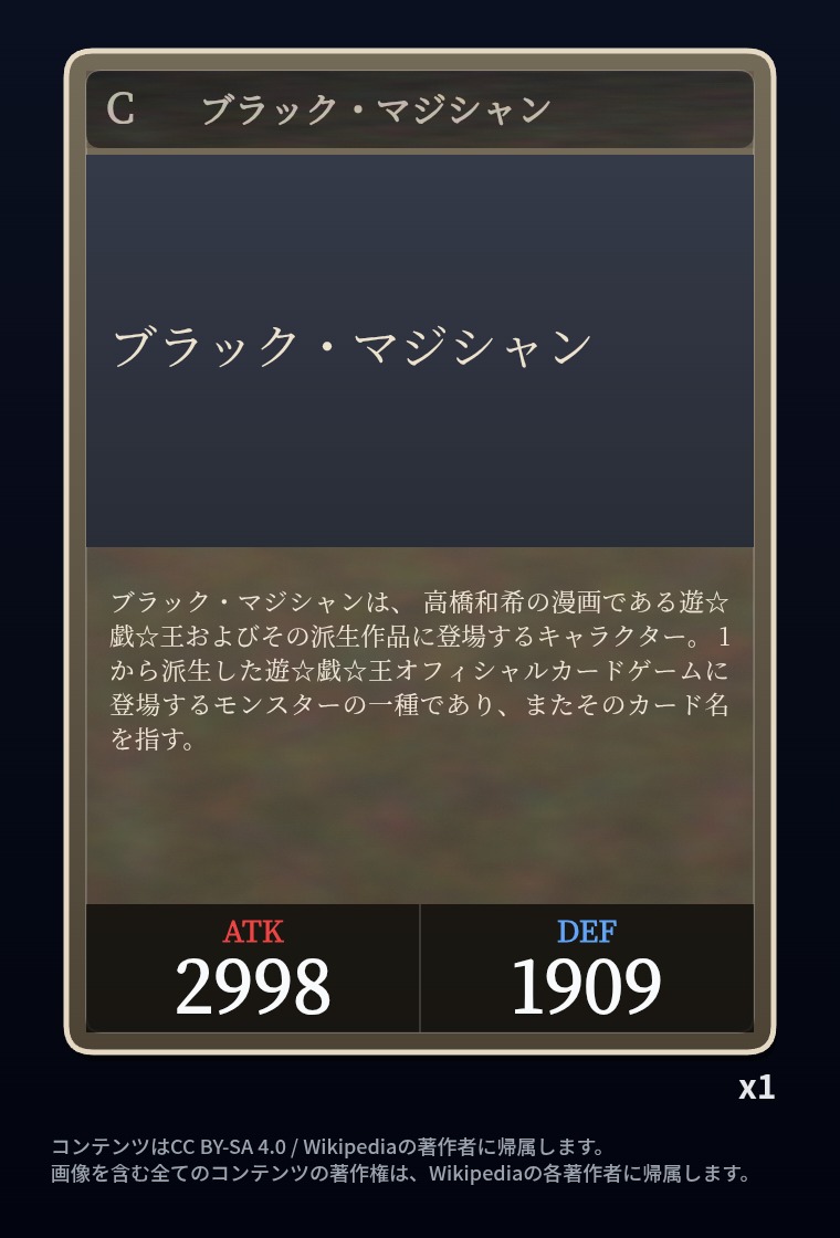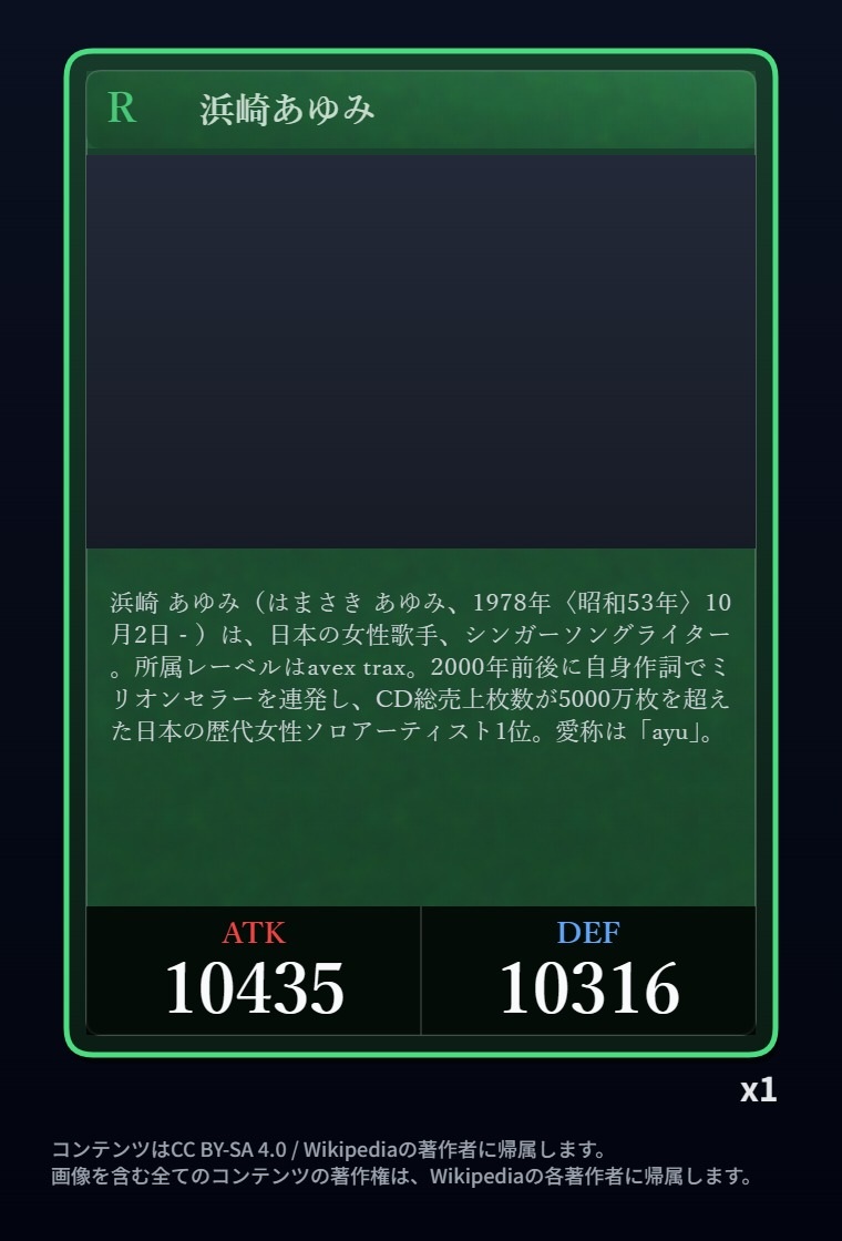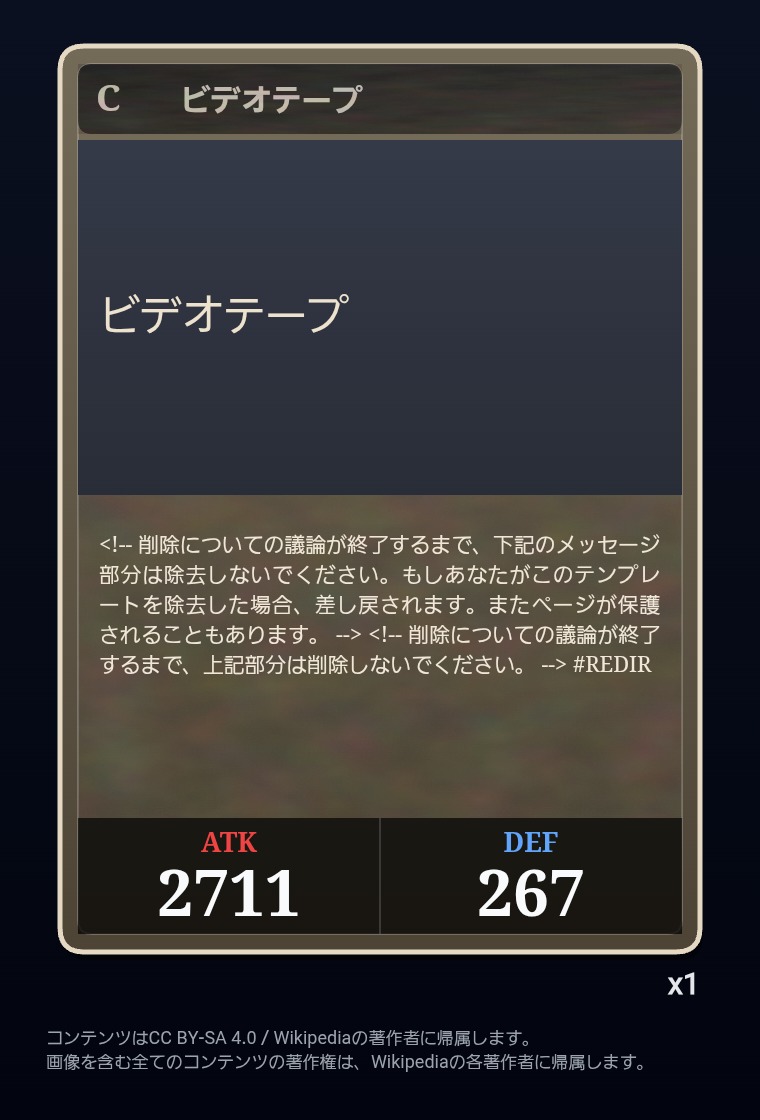 | … | 2326/03/07(土)00:32:00No.1408351352+記事が気になってWikipediaを開いてしまうカードは良いカード |