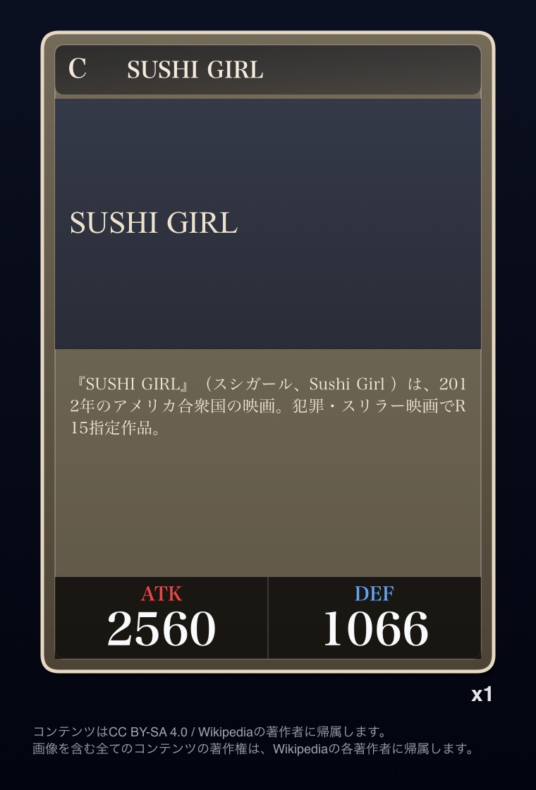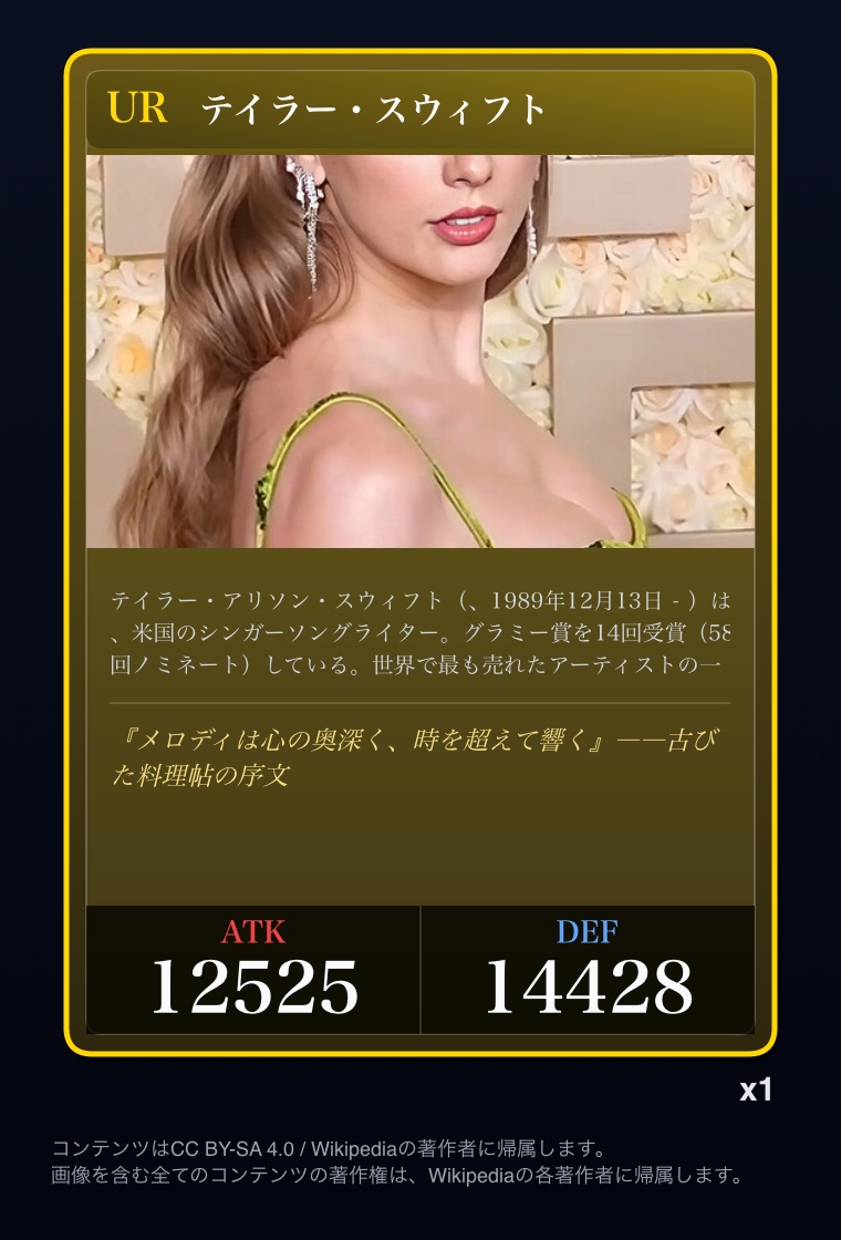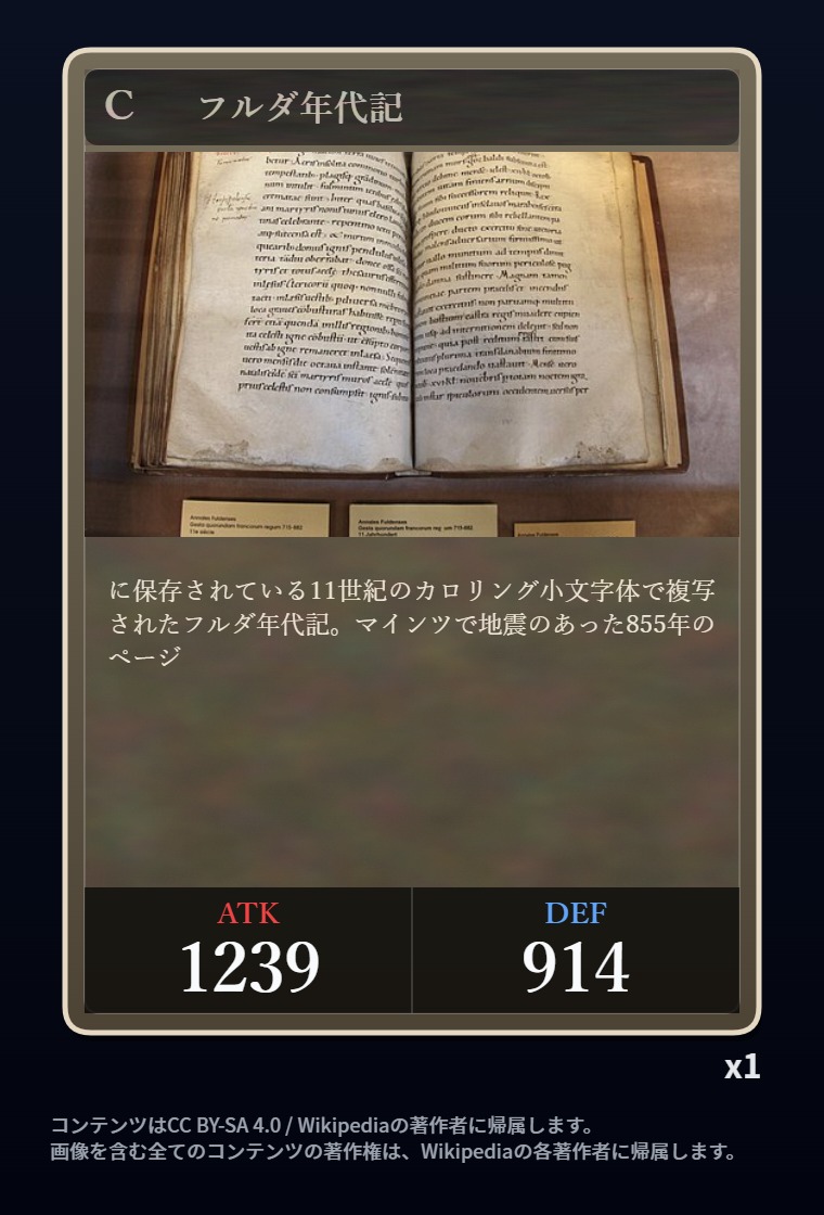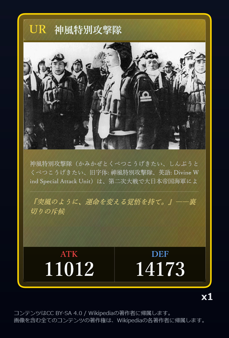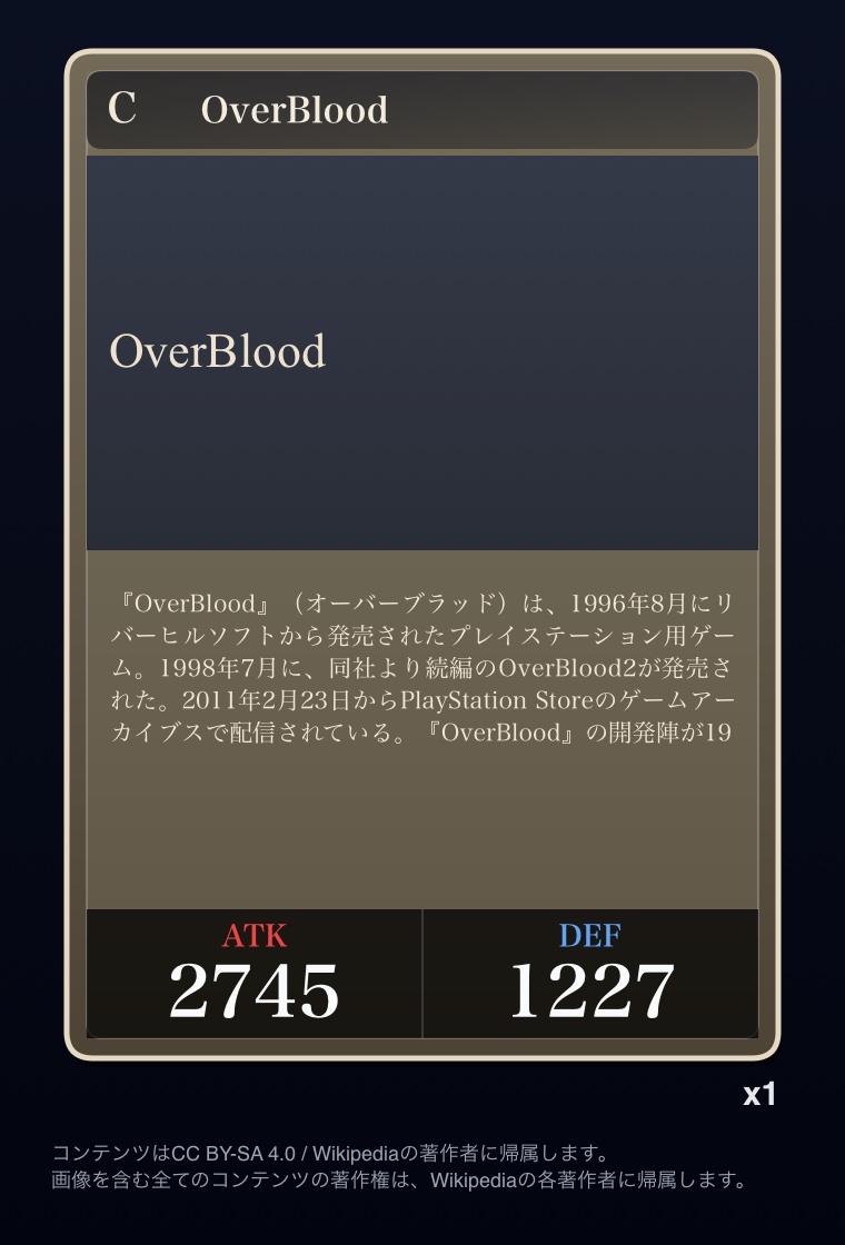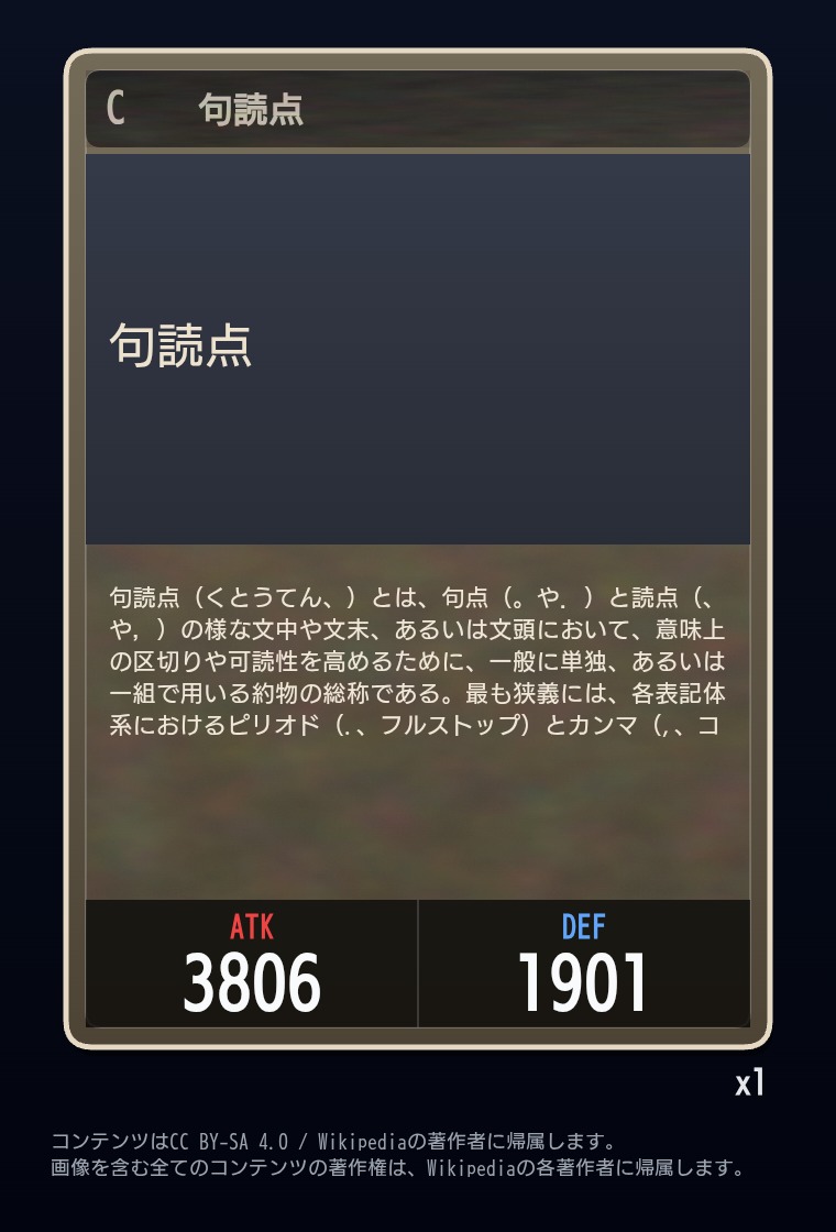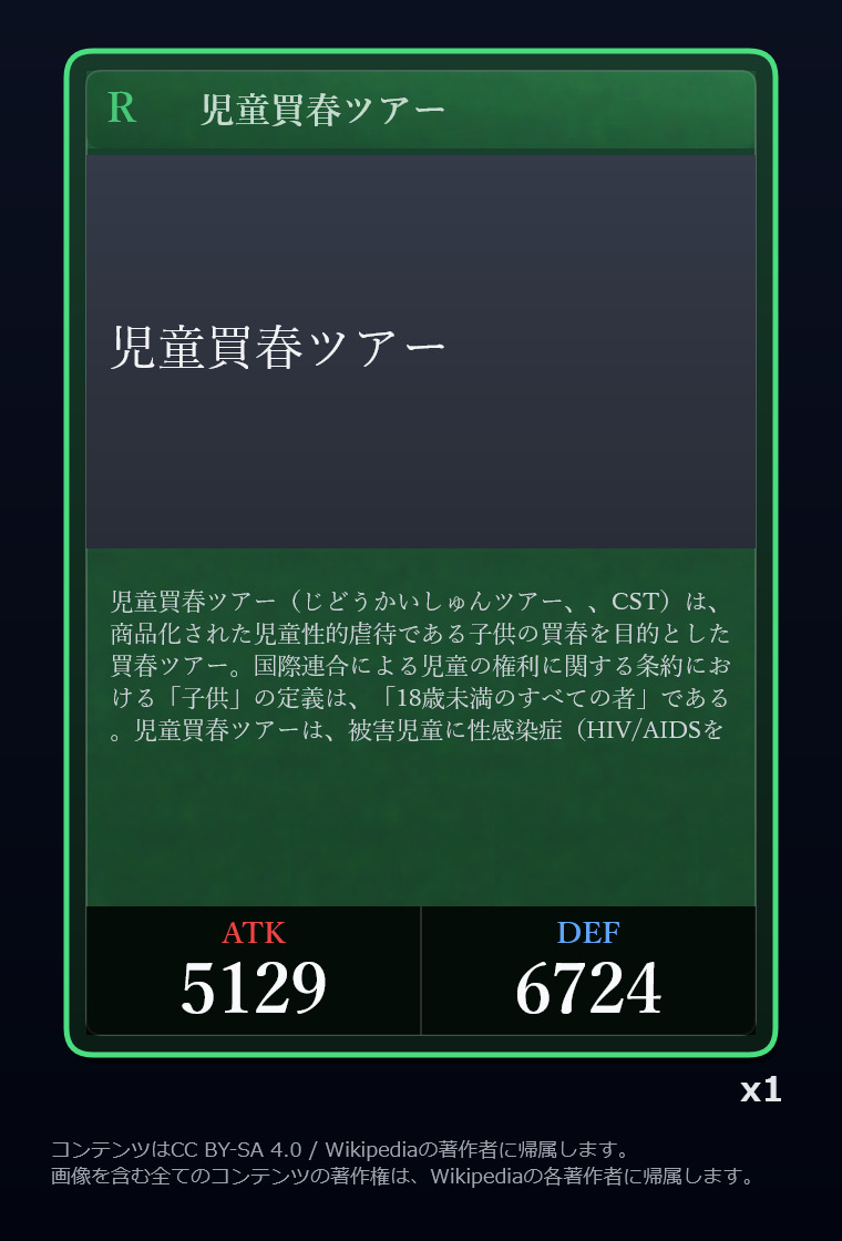 | … | 2326/03/07(土)00:32:00No.1408351352+記事が気になってWikipediaを開いてしまうカードは良いカード |