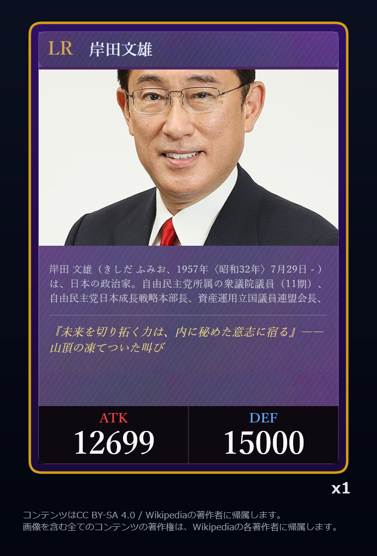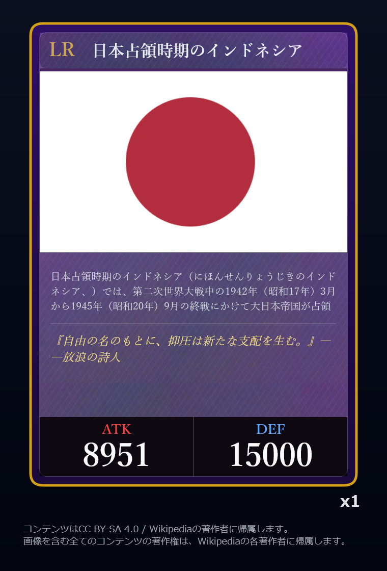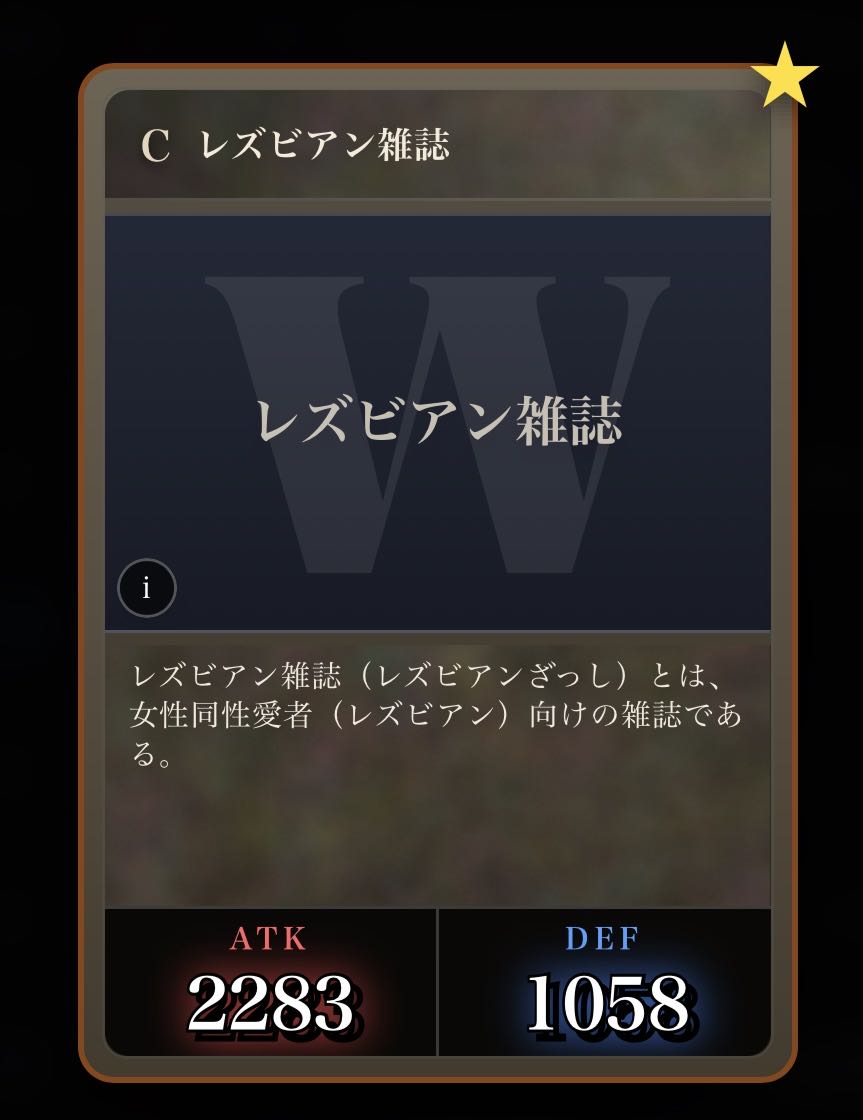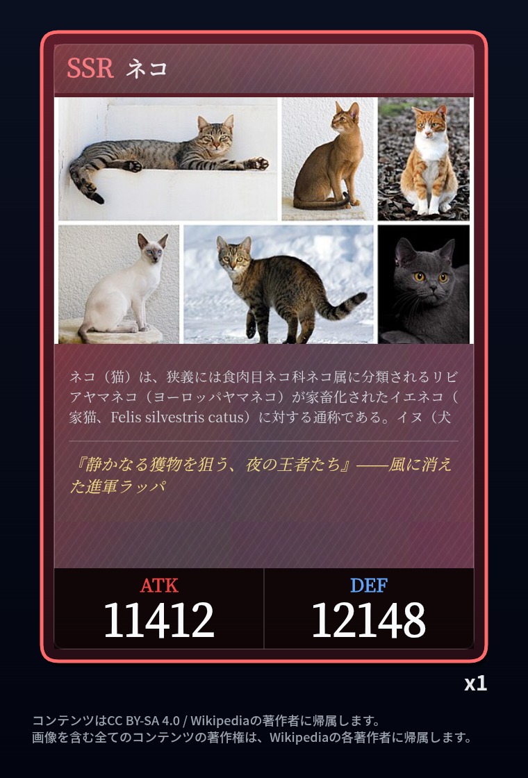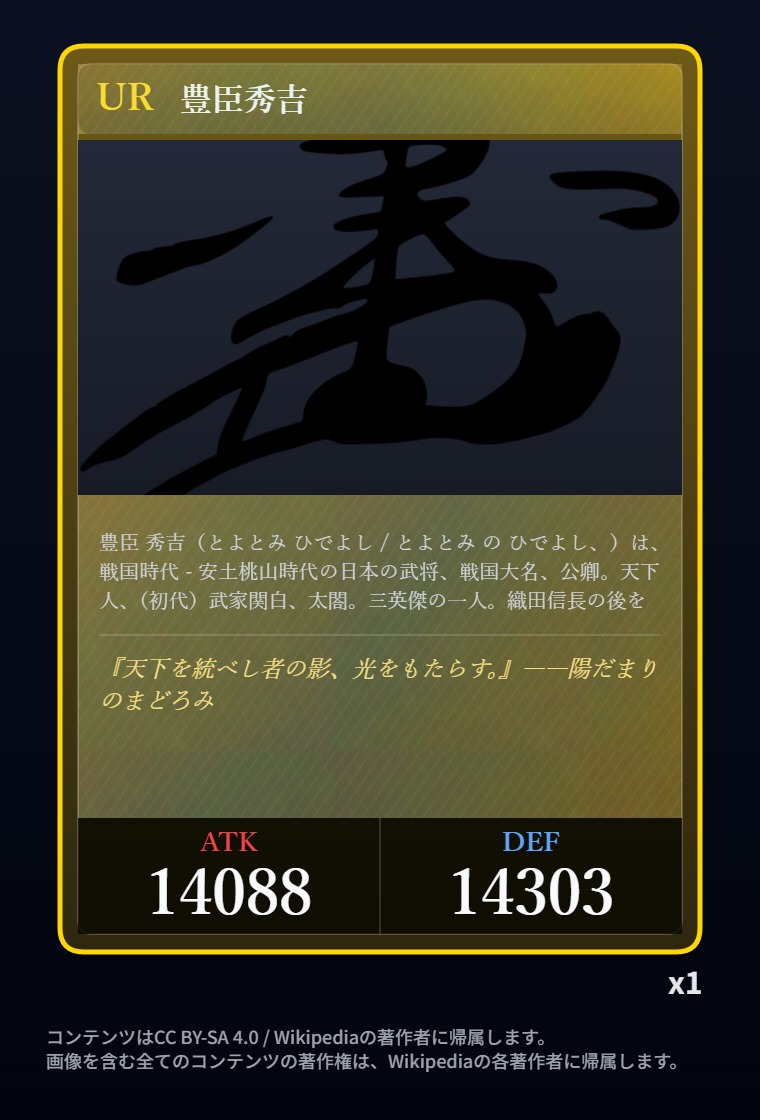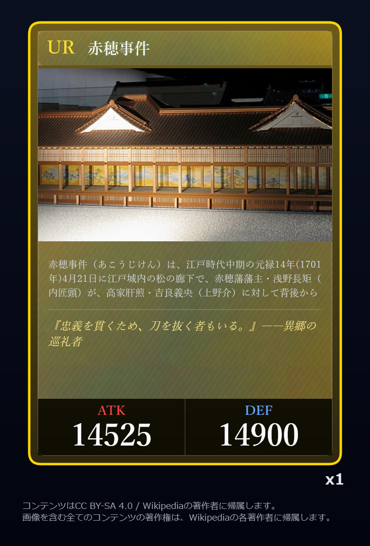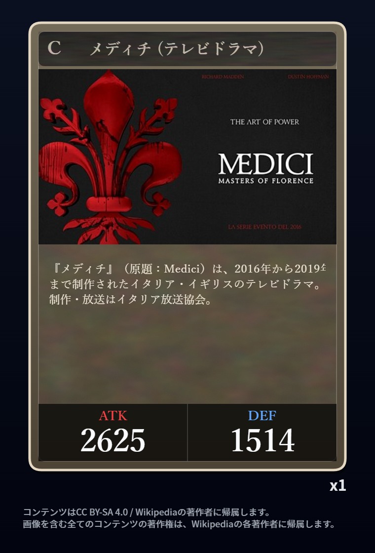 | … | 2326/03/07(土)00:32:00No.1408351352+記事が気になってWikipediaを開いてしまうカードは良いカード |