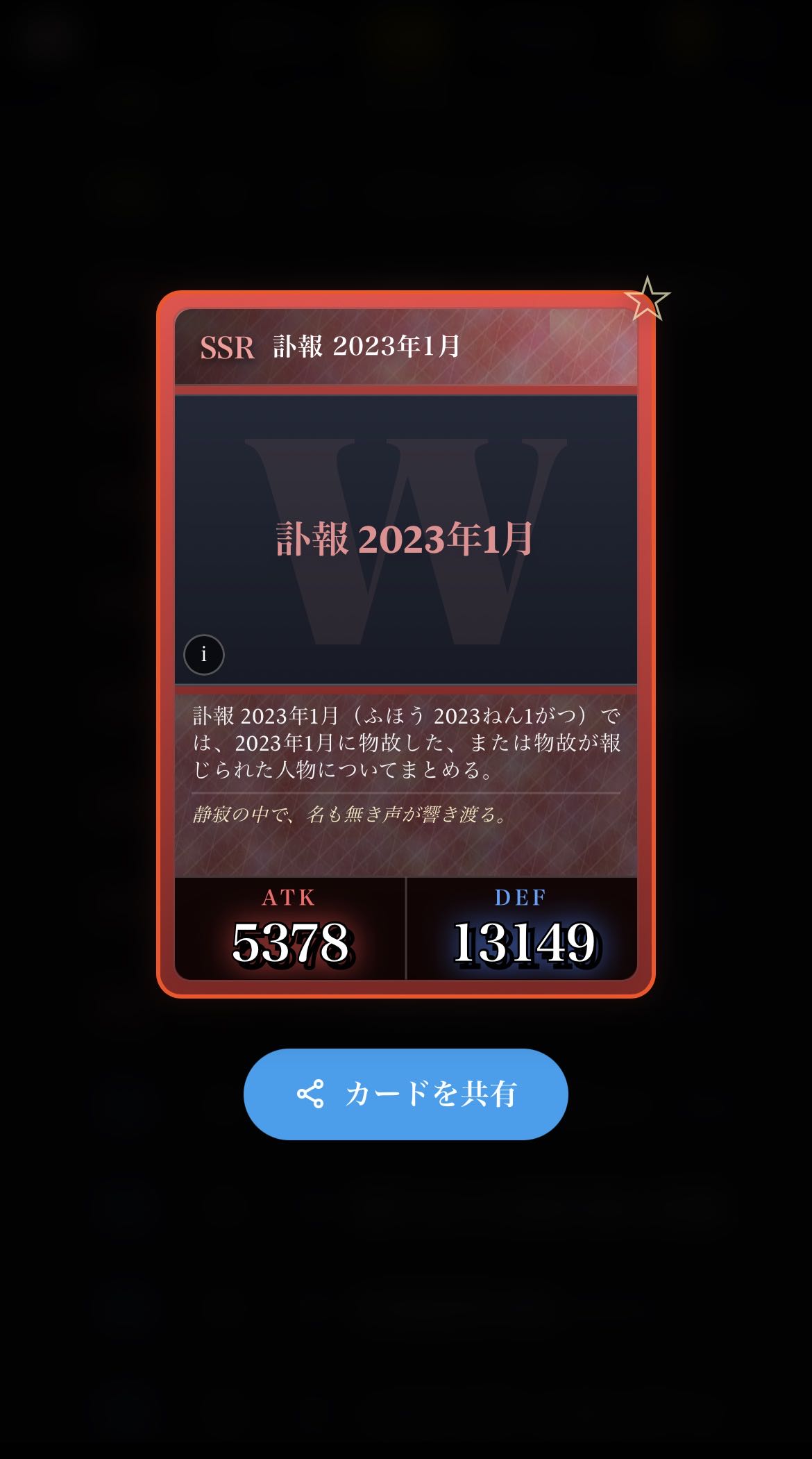 | … | 7526/03/07(土)00:50:54No.1408356216+SSR訃報被ったと思ったが年月が違った |