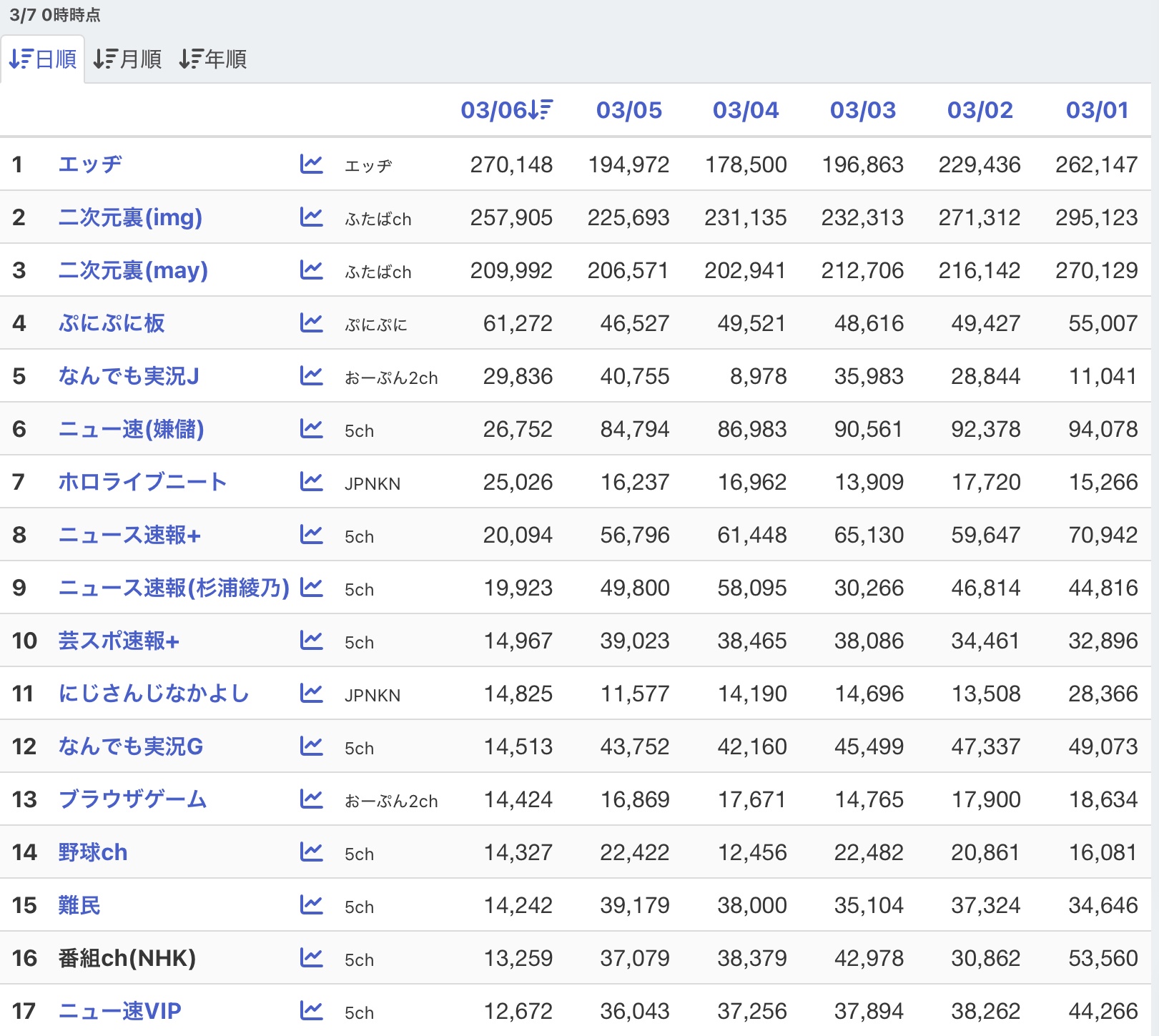 | … | 1526/03/07(土)01:01:11No.1408358551+「ふたば☆ちゃんねる」(2chan.net)の正確なPV数(ページビュー数)は公式には公開されていませんが、外部のトラフィック解析ツール等から推測される概算値は以下の通りです。 |