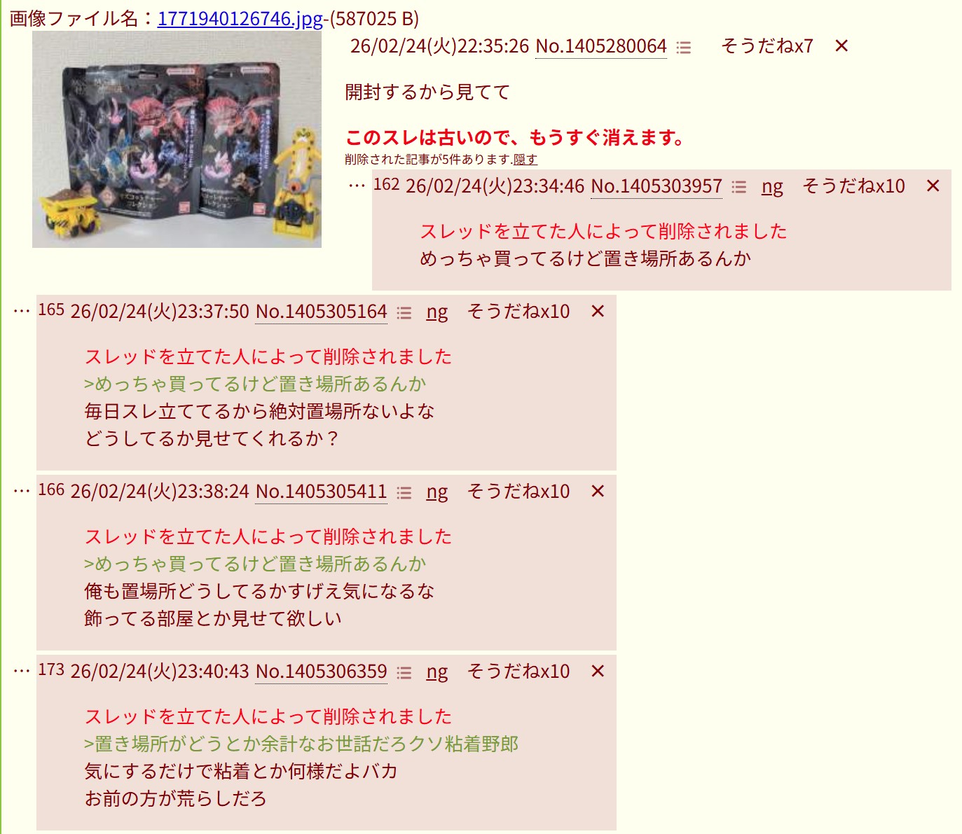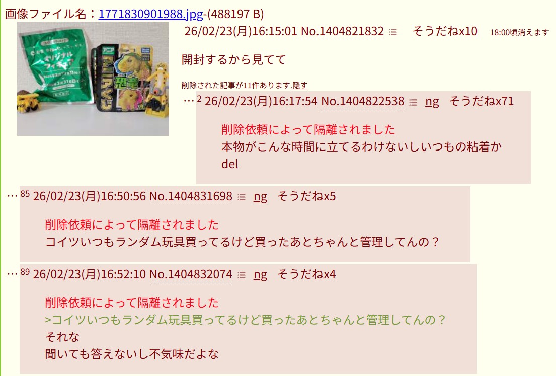 | … | 226/03/07(土)01:49:51No.1408366871そうだねx48また開封粘着か |