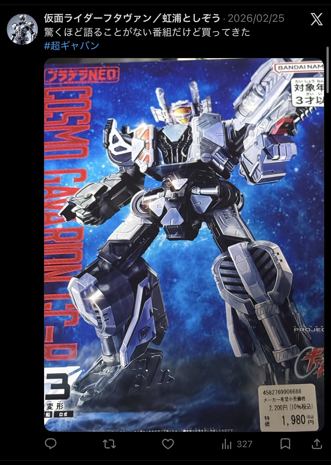 | … | 6326/03/07(土)02:08:40No.1408369234そうだねx3買い物が自慢になるってのが分かんねぇよ 車とか家とかならともかく数百〜数千円の玩具だろ? |