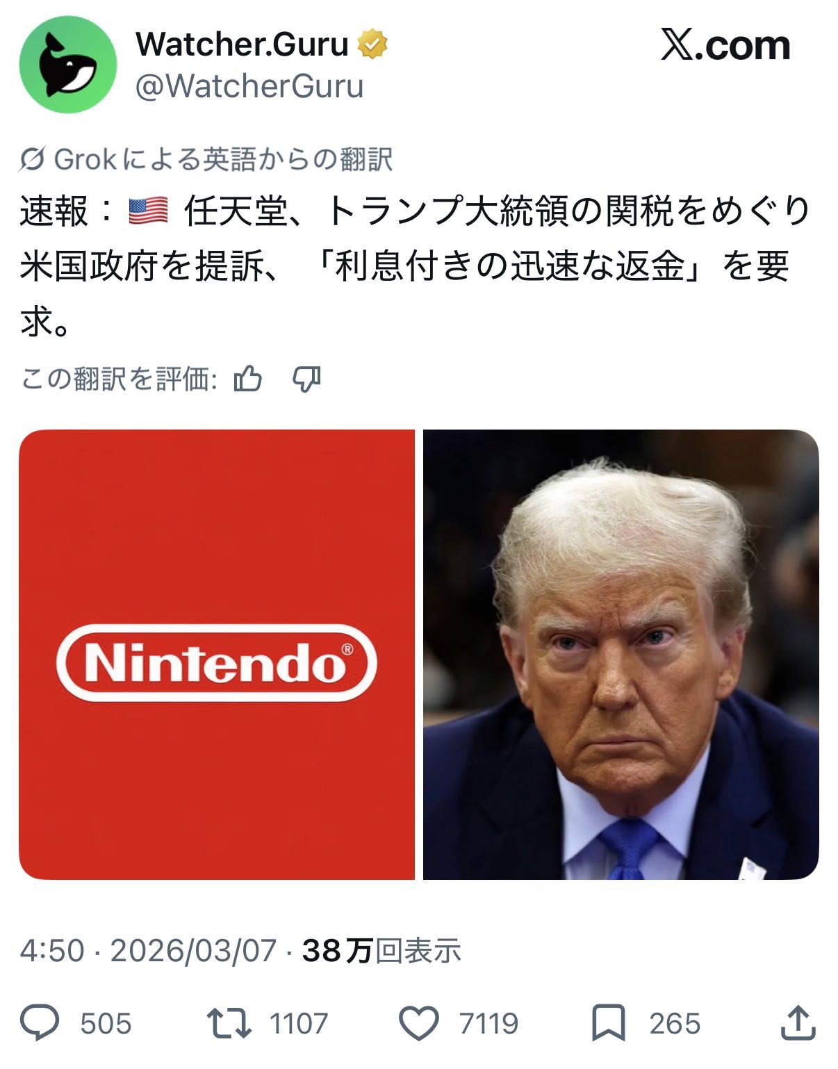 | … | 6226/03/07(土)09:19:02No.1408398260そうだねx3任天堂までアメリカに楯突くのか |