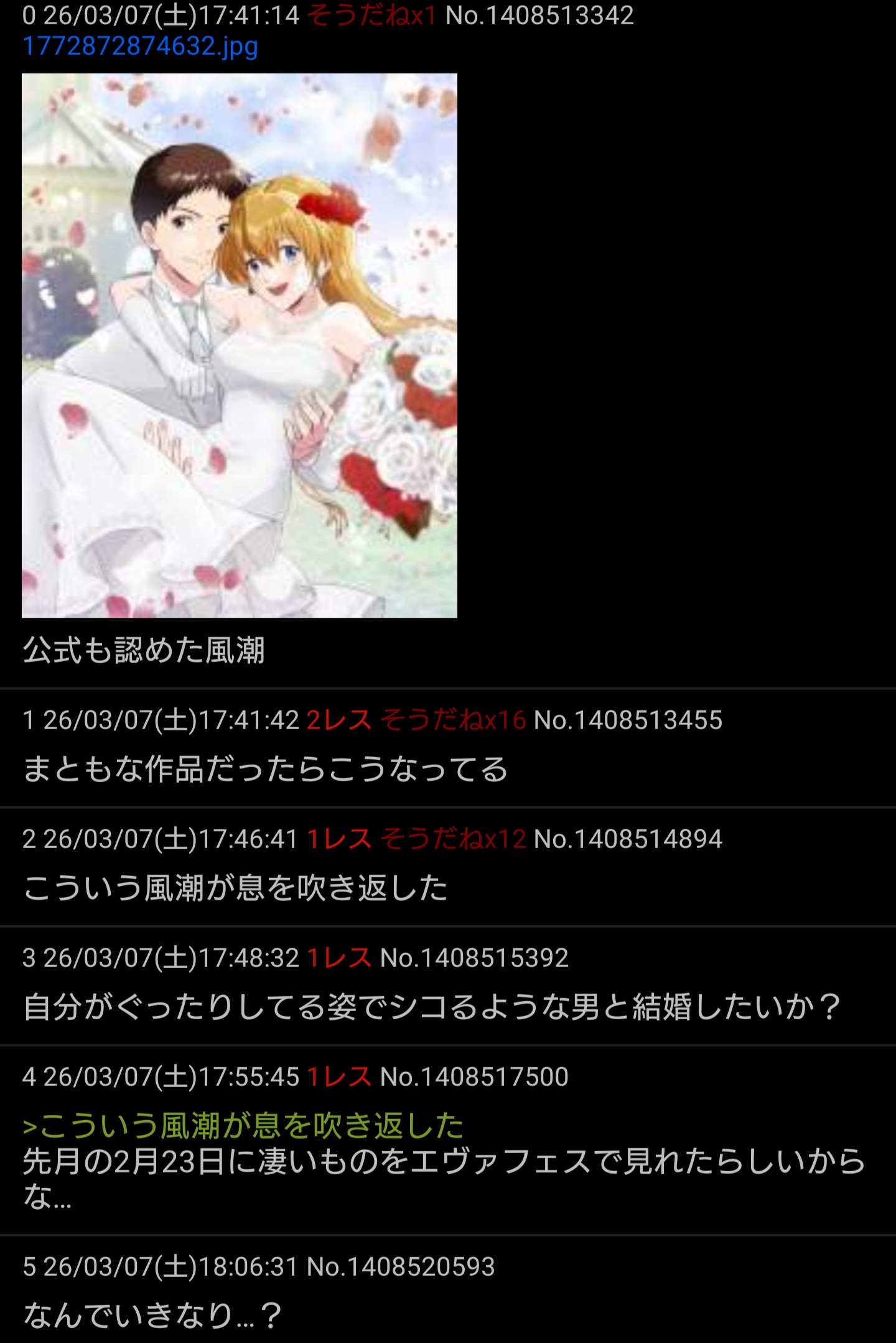 | … | 63226/03/07(土)18:41:01No.1408531885+これがきっかけかは一応わからないけど件のアスカのやつが観られるのは素直に嬉しい |
