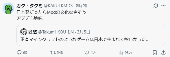 | … | 126/03/07(土)17:40:30No.1408513126そうだねx3マインクラフトの元になったgumonjiは国産ゲームだけど… |