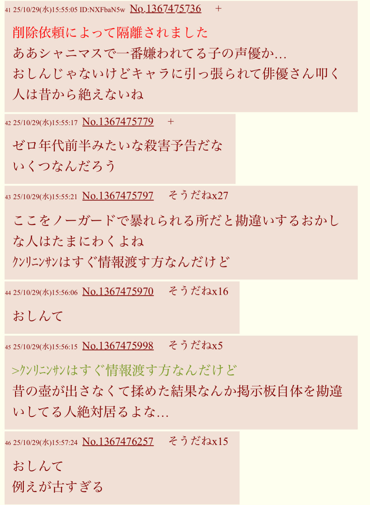 | … | 526/03/07(土)19:46:01No.1408555497そうだねx1スレッドを立てた人によって削除されました |