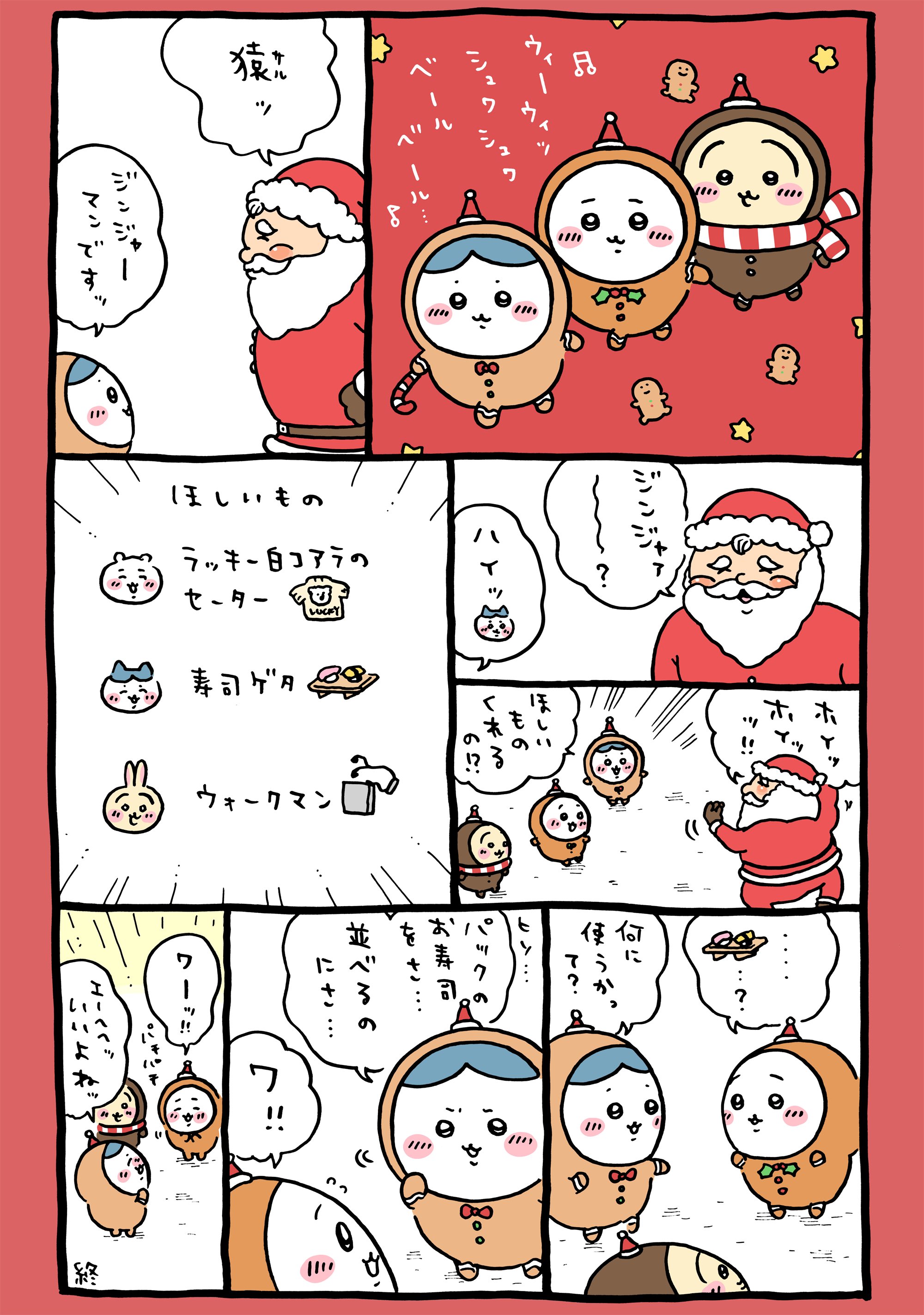 | … | 9126/03/07(土)21:09:52No.1408595601+ちいかわもクリスマスとか季節系の1ページ漫画でとんでもないの出てきたりするよね |