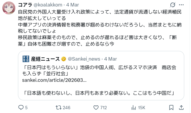 ただ中国人が池袋で独自のアプリで決済してるだけで