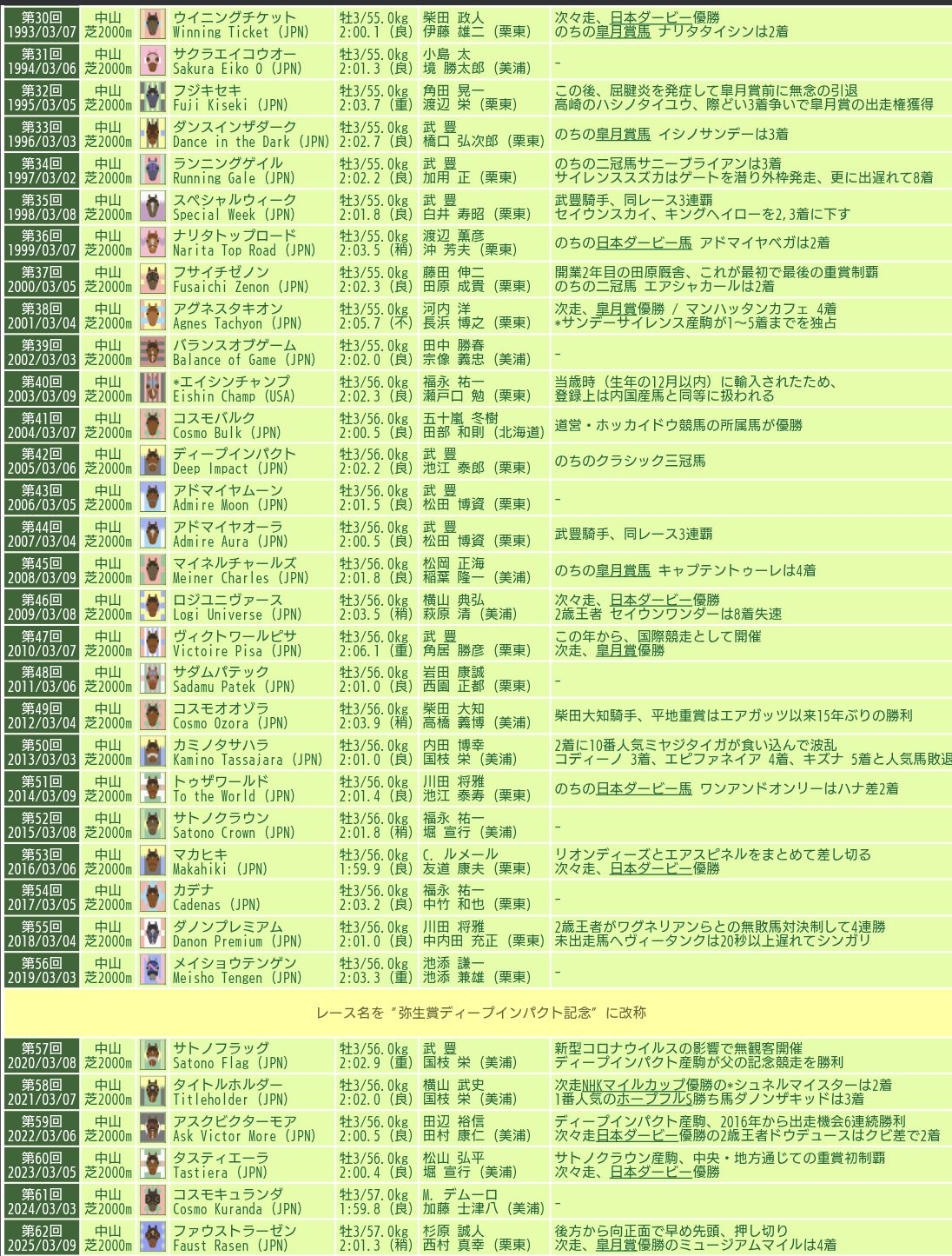 | … | 11226/03/07(土)21:20:18No.1408600447+むしろウマ娘アプリスタートしてからの報知杯弥生賞ディープインパクト記念(皐月賞トライアル)馬に関しては |