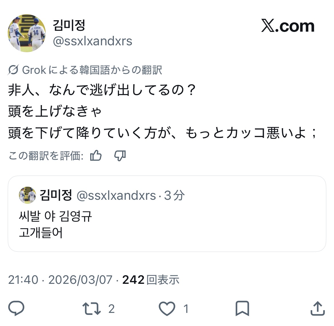 | … | 426/03/07(土)21:33:23 ID:KRrHrlJANo.1408607482そうだねx4🇰🇷もテンパってますねえ |