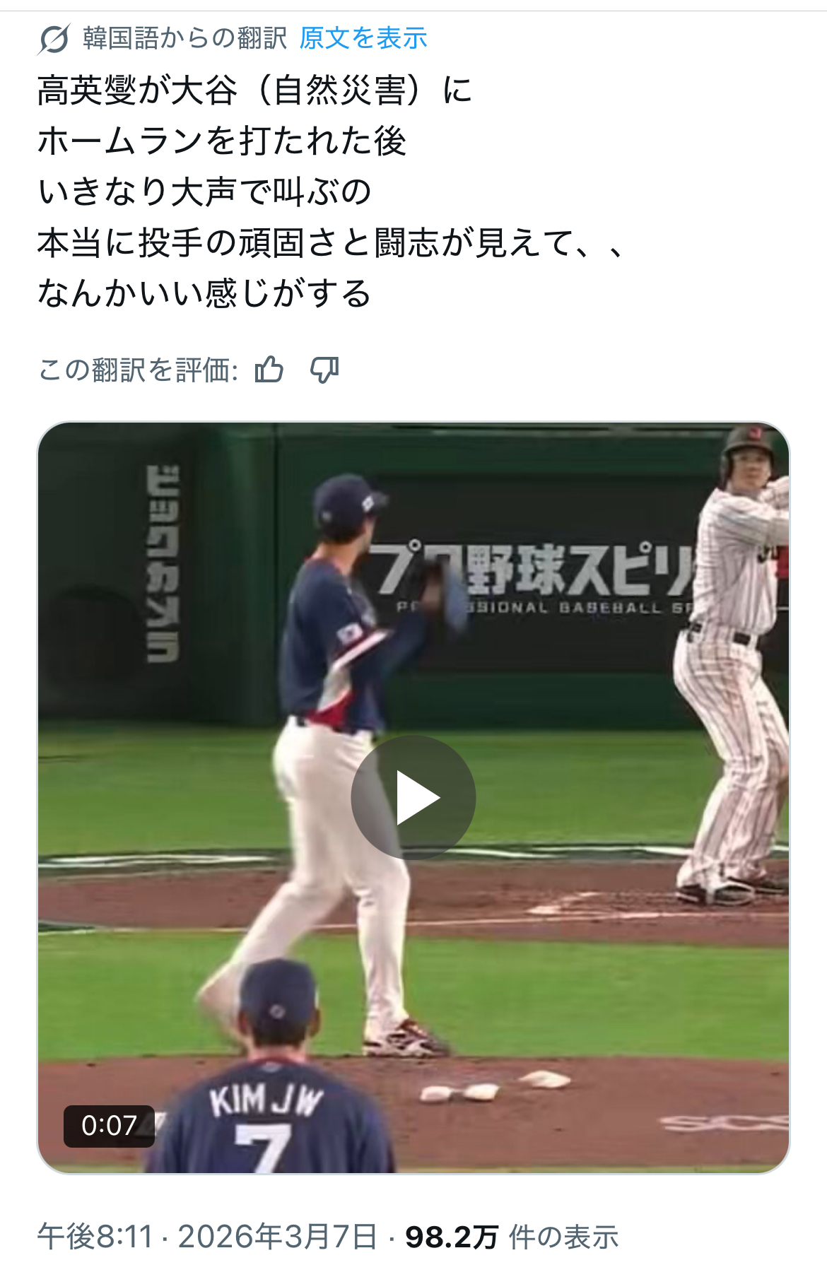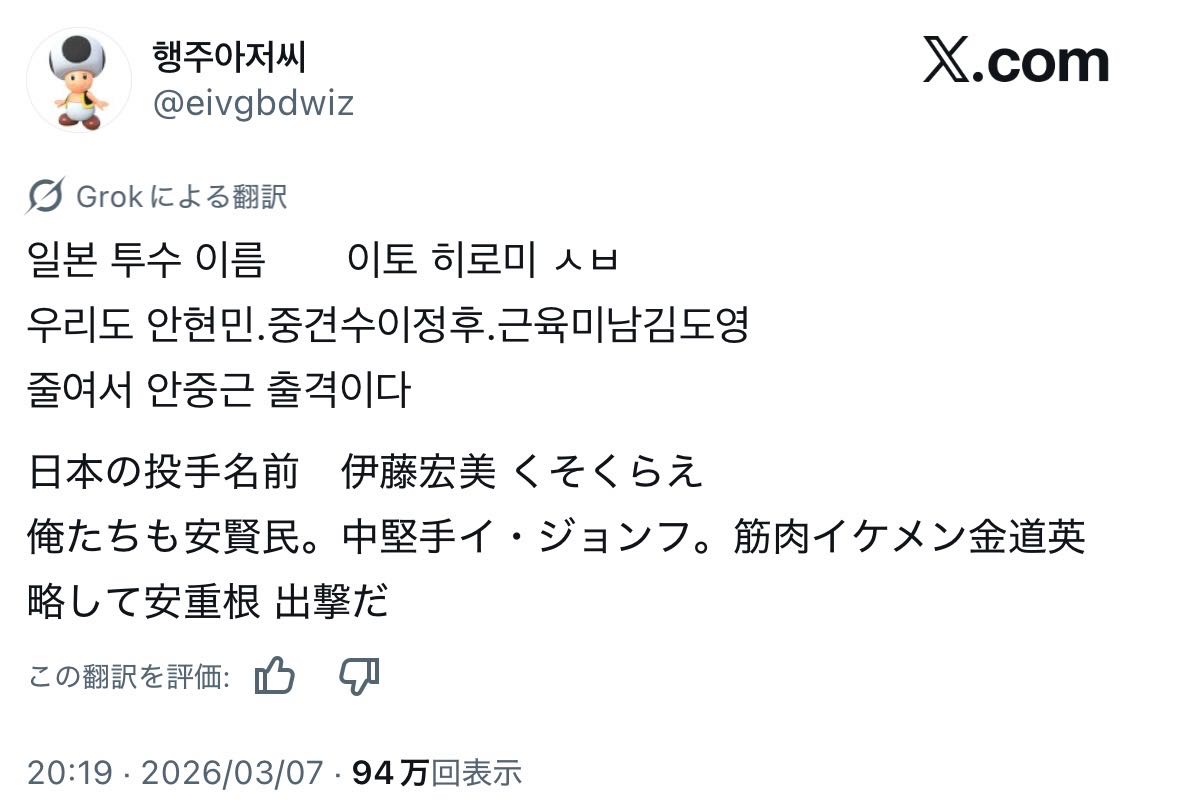 | … | 86026/03/07(土)23:02:33 ID:iVdwmiksNo.1408646457+韓国野手はいいのいるけど投手は最近聞かないな |
