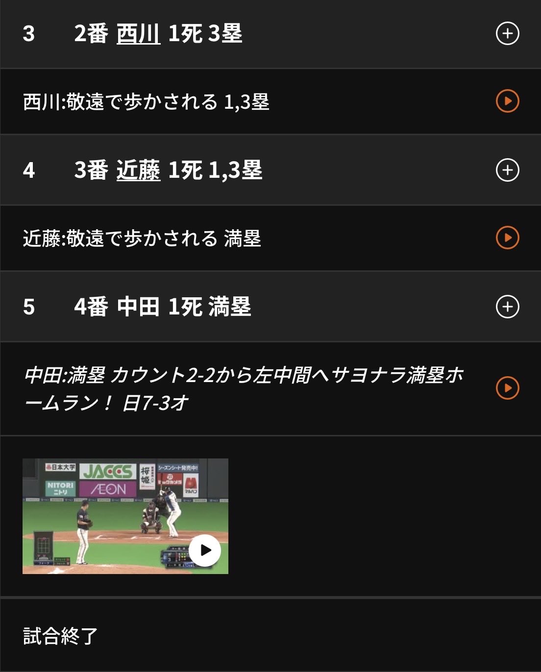 | … | 1526/03/08(日)06:44:19No.1408724721そうだねx5近藤前の打者敬遠されたの生まれて初めて? |