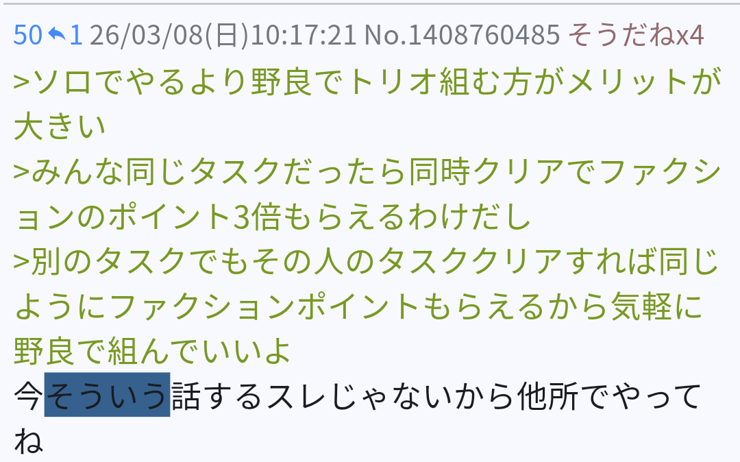 | … | 20326/03/08(日)12:43:22No.1408797166+ソロより野良パーティプレイの方が全然楽しいねこれ |