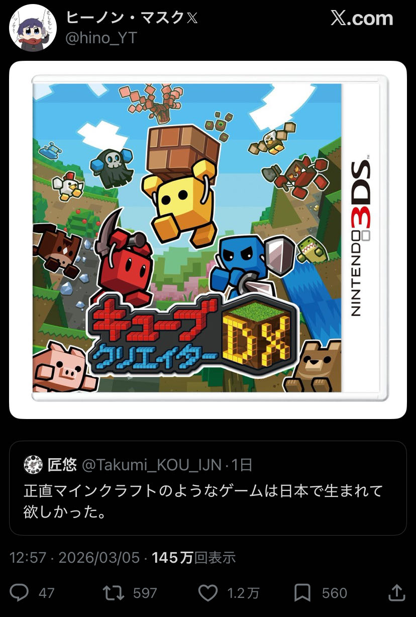 | … | 33726/03/08(日)16:45:46No.1408861698+日本にもマインクラフトのようなゲームいくつもあると思うが |