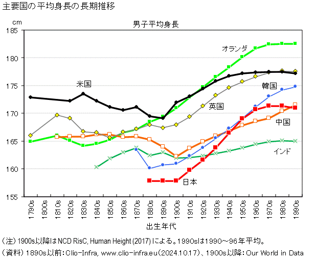 | … | 7226/03/08(日)16:41:44No.1408860702そうだねx1>80年がピークで成人の平均身長だからこっから下がるって事は1960年生まれが成人した頃から下がり初めるんだから貧困どうこうとかは全部的外れ |