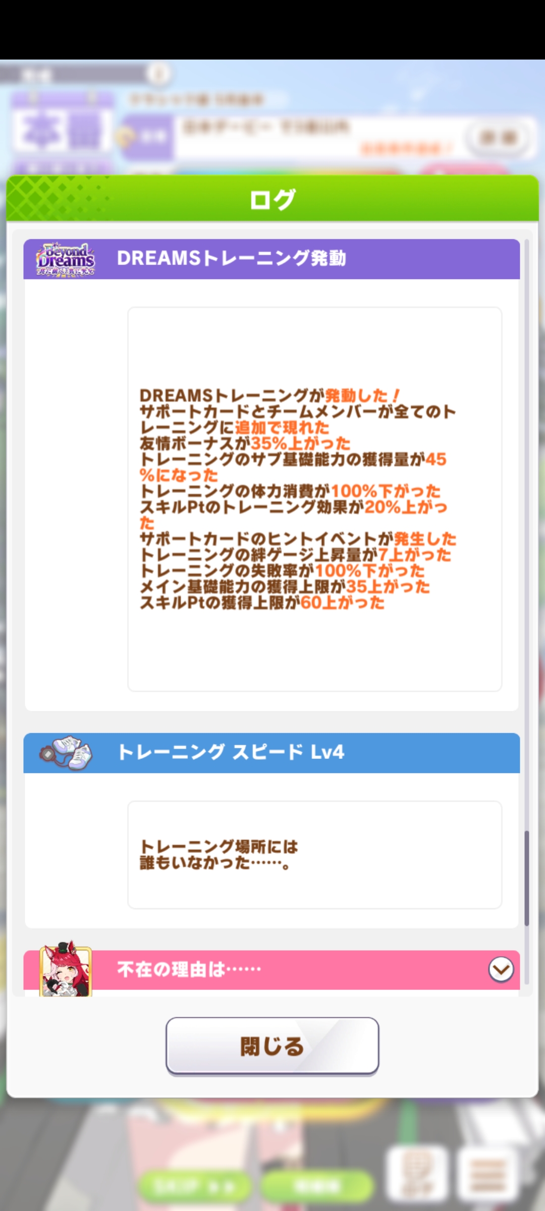 | … | 17026/03/08(日)20:23:33 ID:B5Fl6886No.1408932027+起動できる時間を全て因子周回に費やしているのでチムレ更新をする時間と意欲がありません!とうとう反復横跳びから5居座りになっちゃいました |
