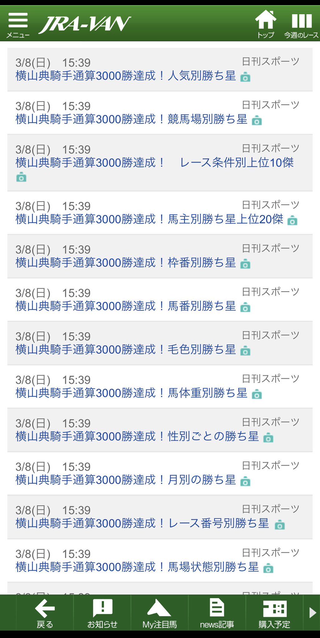 | … | 4526/03/08(日)19:58:33No.1408920821+3着 べレシート(北村友一) |