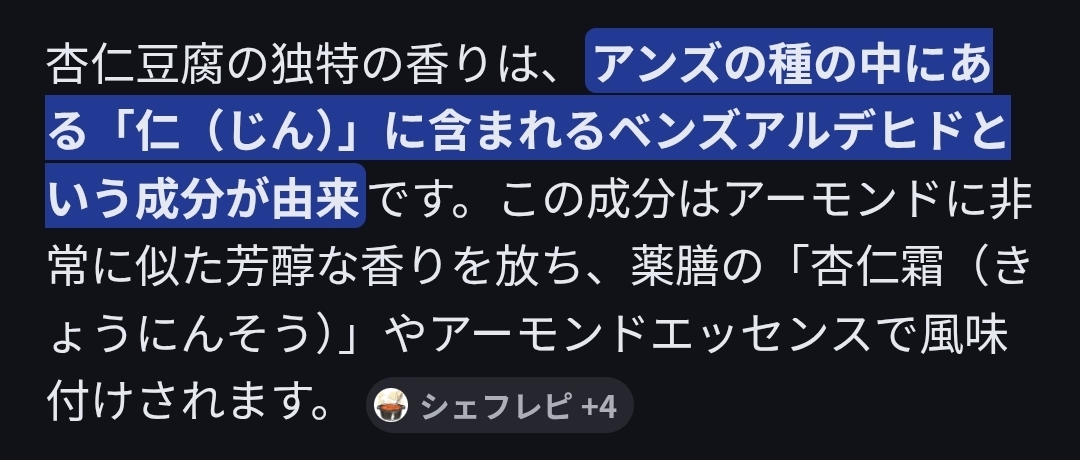 | … | 7426/03/08(日)20:25:26No.1408932964+杏仁豆腐の味ってどっから来てるんだろうなアレ |