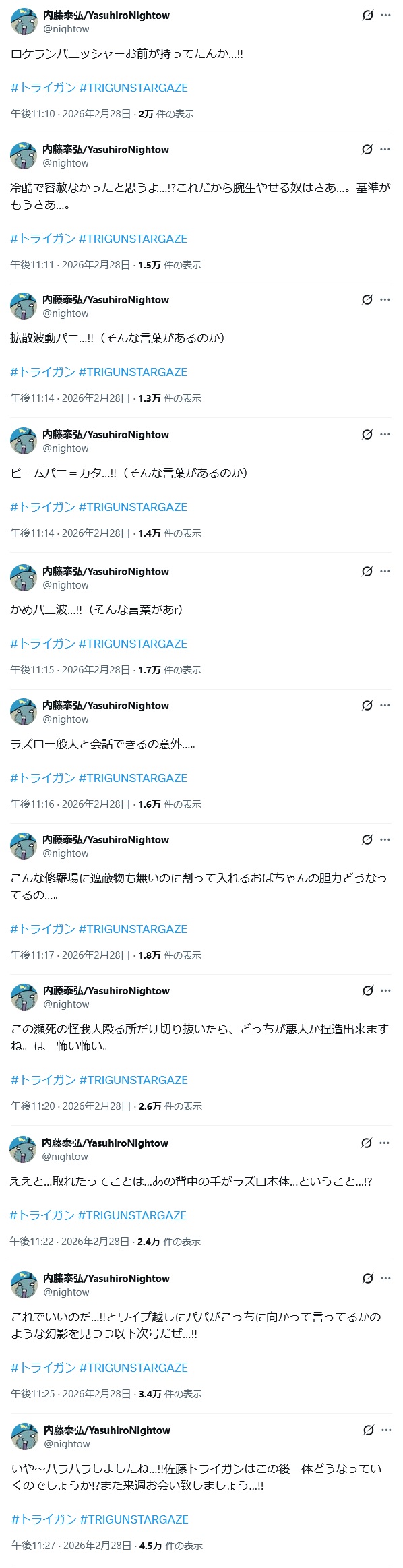 | … | 5726/03/08(日)20:20:37No.1408930660そうだねx7ワイとリヴィオとトンガリの3人でトライガンや! |