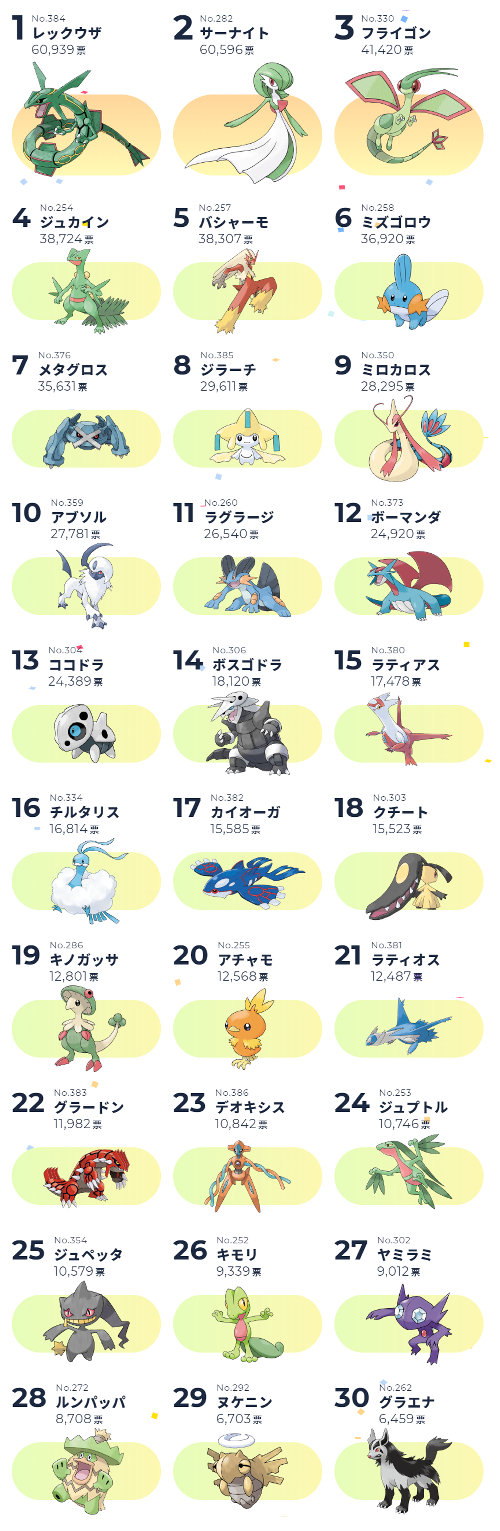 | … | 2126/03/08(日)21:18:31No.1408956590そうだねx1ホウエン人気トップ3多分全部緑だから… |