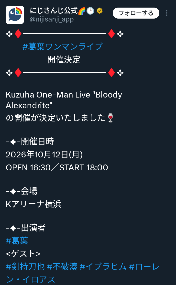 | … | 2626/03/09(月)00:49:31No.1409024504+いつもライブは会場を3日連続使用でコストカットしてるけど |