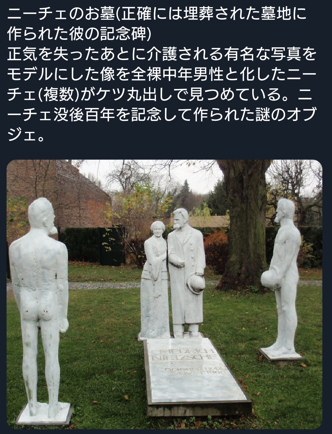 | … | 9326/03/09(月)07:08:20No.1409049757+ニーチェの墓に像を?俺が?? |