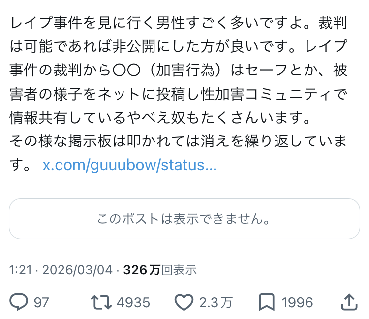 >暴行事件で裁判官が女性だと観客が多いのはガチなんたけどね