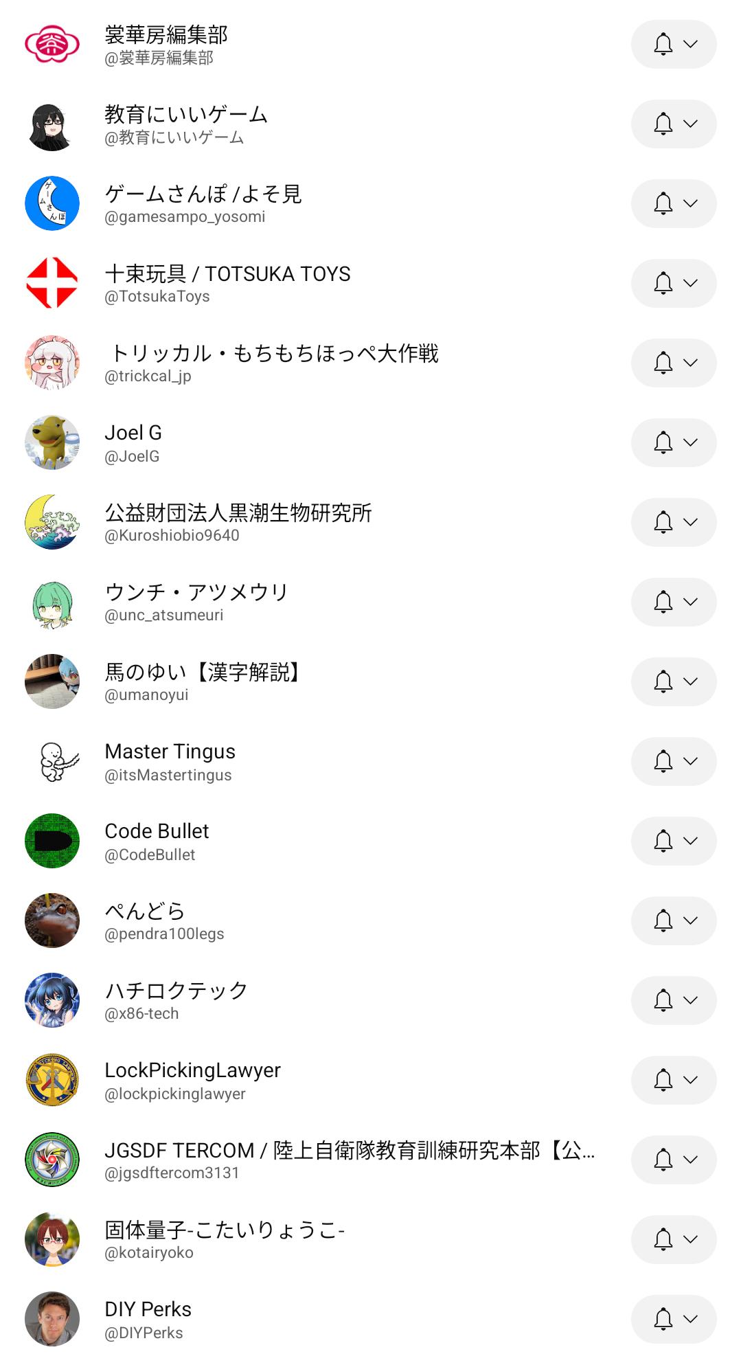 | … | 27526/03/09(月)12:12:28No.1409090500+知名度そこそこなゲームのやり込み系ばっかり登録してるから登録者3桁4桁のチャンネルばっかりだ |