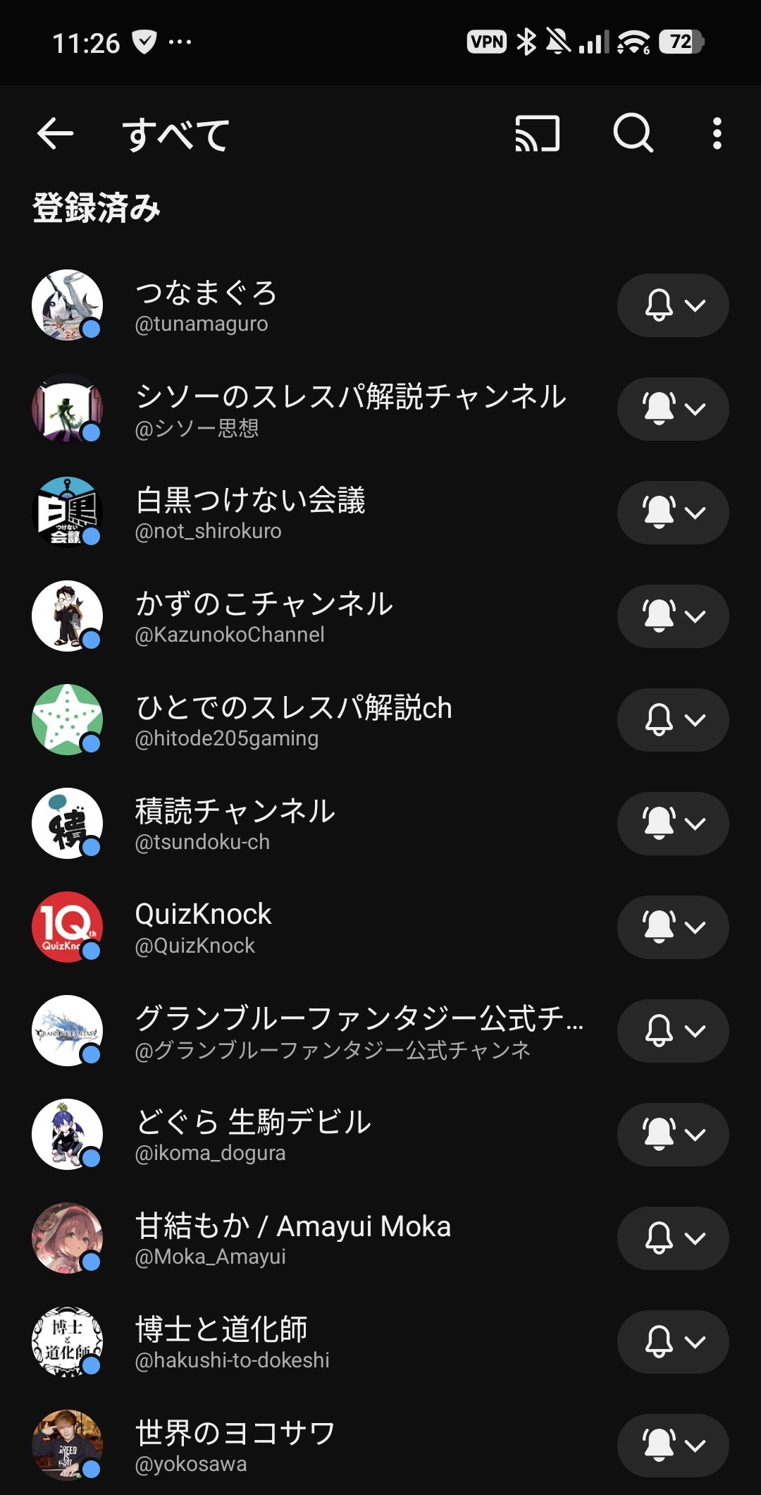 | … | 4926/03/09(月)10:48:11No.1409076421+スマホで動画の自動再生しながら寝落ちしたときに登録ボタンを押したみたいで 全く記憶にないチャンネルがいくつも登録されてた |