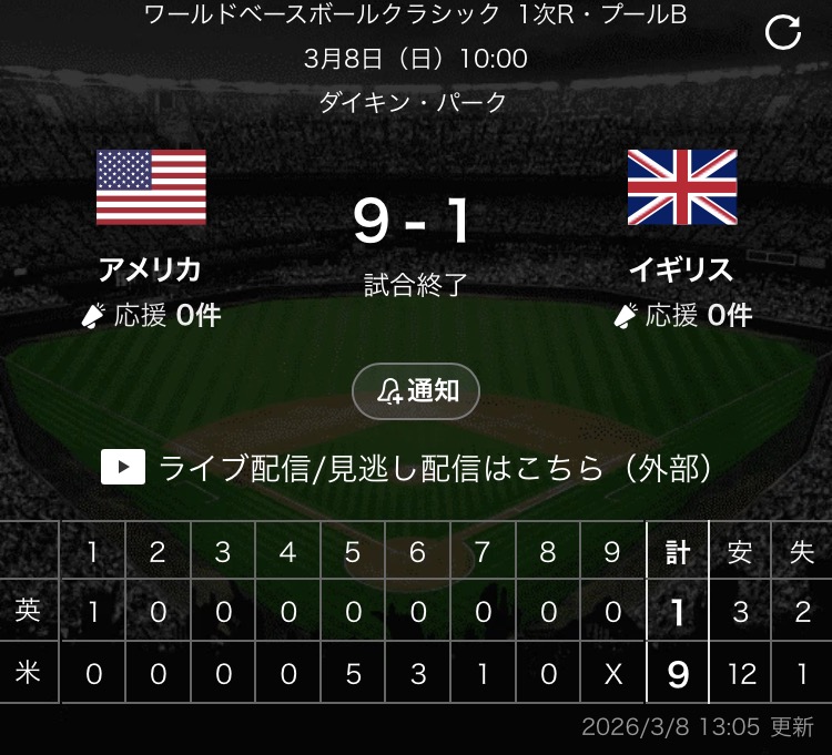 | … | 1226/03/09(月)12:24:21No.1409093543+アメリカのタイミーさん初回失点して負け投手のまま降板して帰国するのかと思っちゃった |