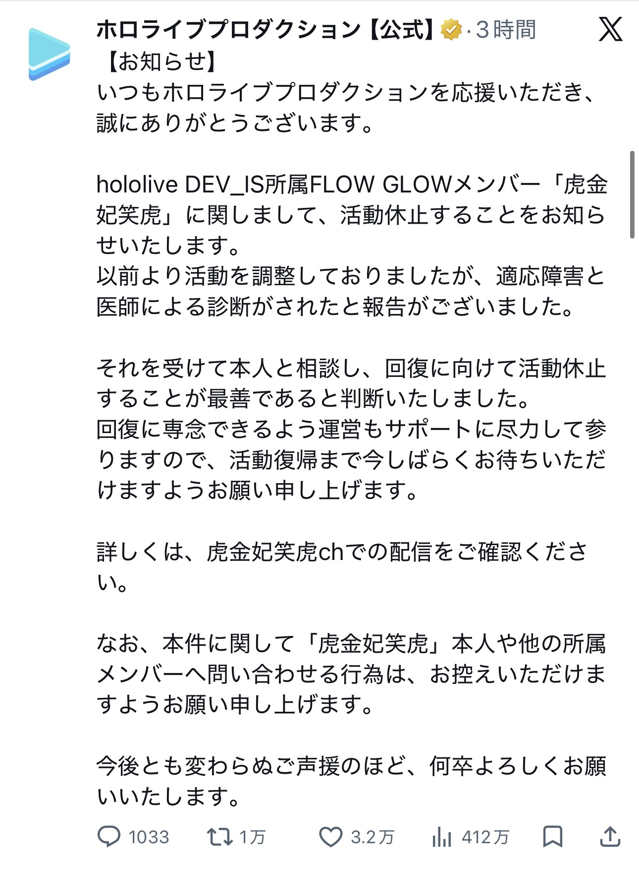 またホロメン活動休止ですか…このスレは古いので、もうすぐ消えます。