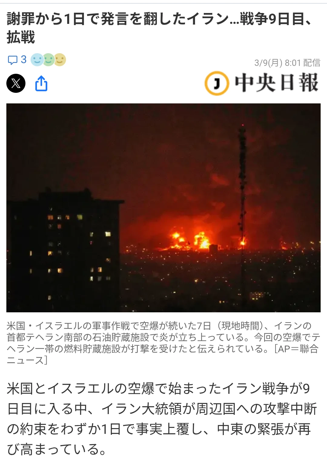 | … | 5426/03/09(月)15:13:24No.1409128620+>初動ではイランが意外と理性的な対応した |