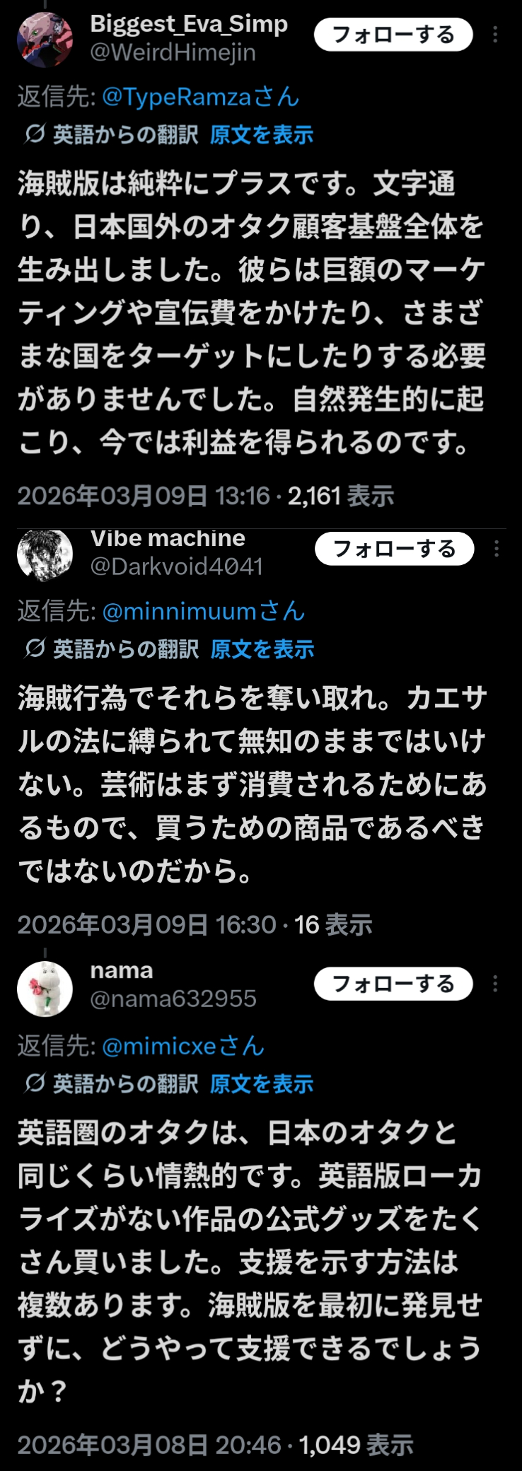 外人オタクの海賊版への反応見てると日本人の遵法意識が高すぎるだけな気がしてくるよねこのスレは古いので、もうすぐ消えます。