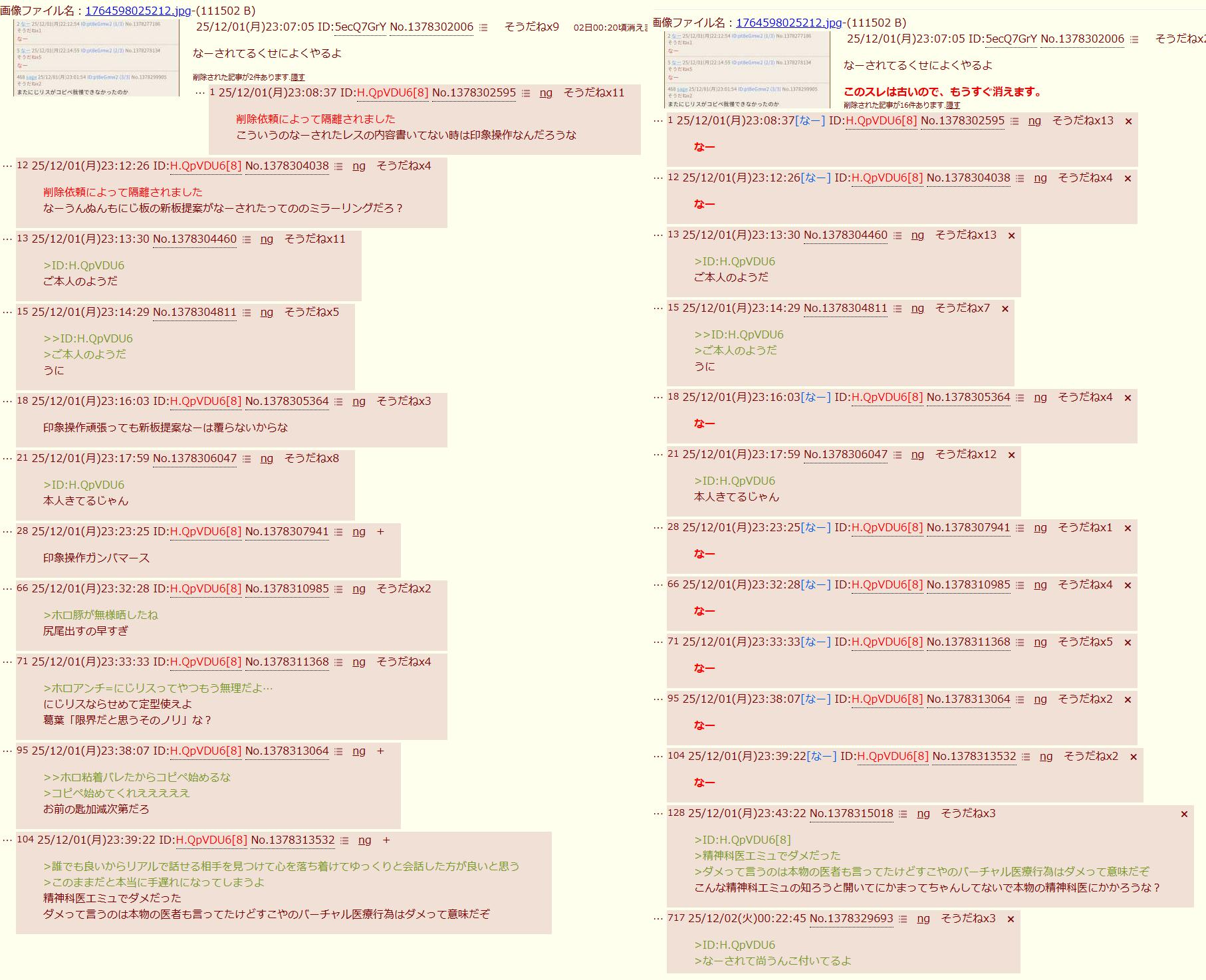| … | 62826/03/09(月)21:59:16No.1409252436そうだねx4>やっぱハヤトってにじにもホロにもいちゃもん付けたいだけのカスじゃん |