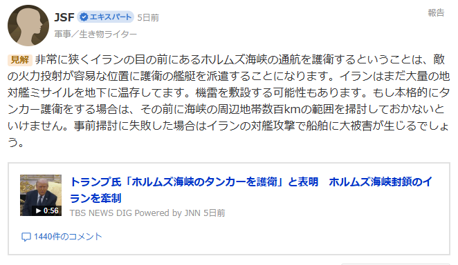 | … | 43126/03/10(火)00:26:16No.1409307779+海峡封鎖してるのはイランだからでは |