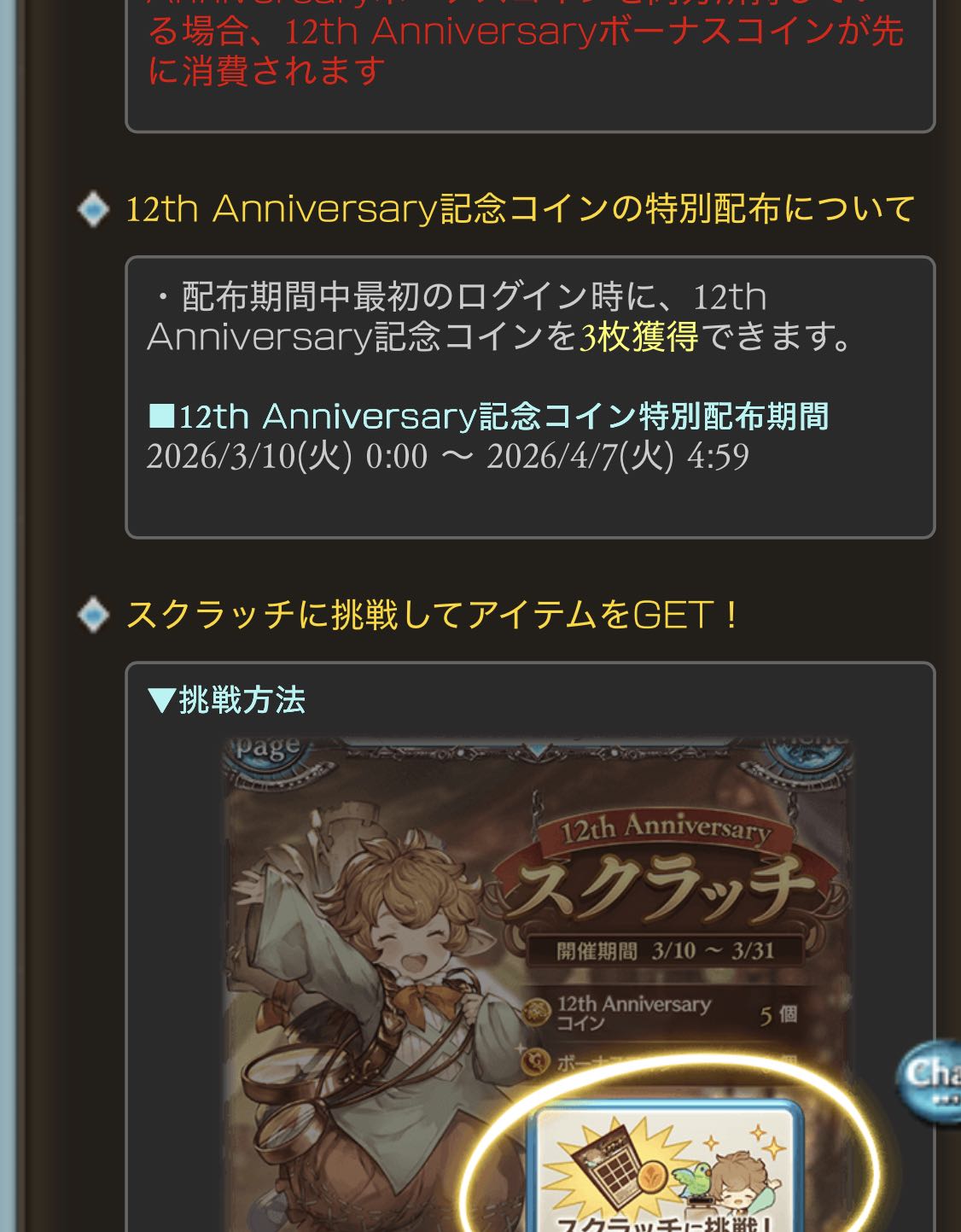 | … | 75626/03/10(火)01:14:46No.1409318262+>アニバチケとかスタレももう来るのか…運良くスタレで欲しいキャラ引けた場合も兼ねてのアニバチケの相談いい? 次スレ立てるなら |