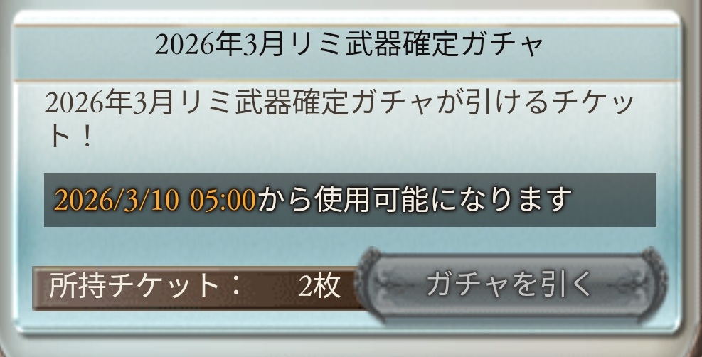 | … | 7126/03/10(火)00:02:19No.1409301090+リミ武器確定チケだけ画像表示されないんだよ |
