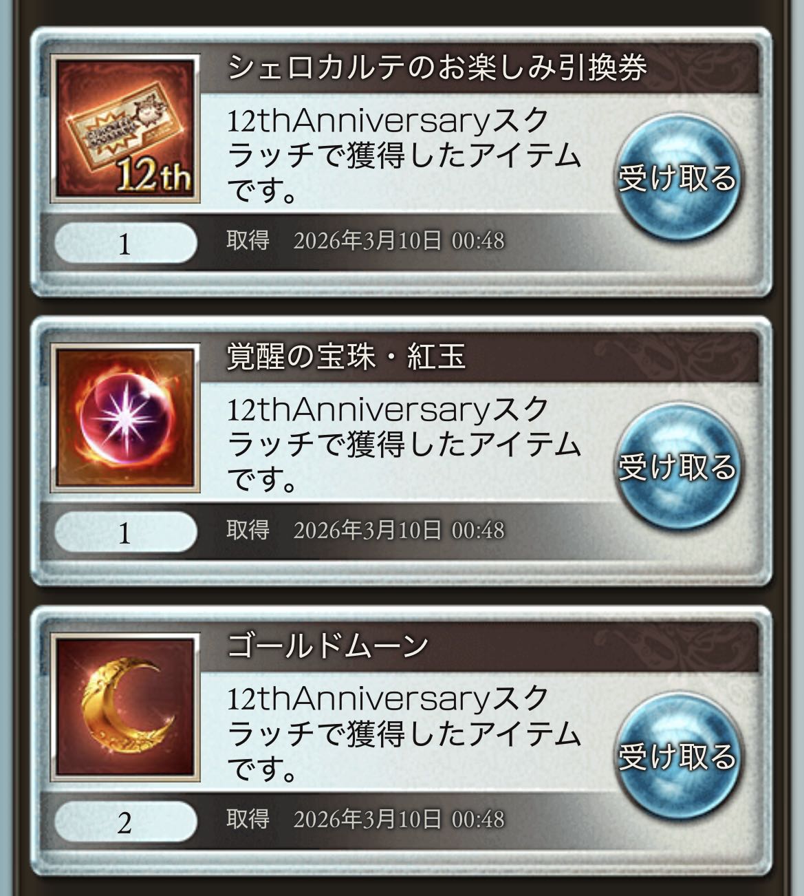| … | 5726/03/09(月)23:58:17No.1409299999+リミチケは未所持か複数欲しいのに1本しかないやつとか引きたいよねえ あとはまあ覚醒待ちかつ凸未完成のやつとか… |