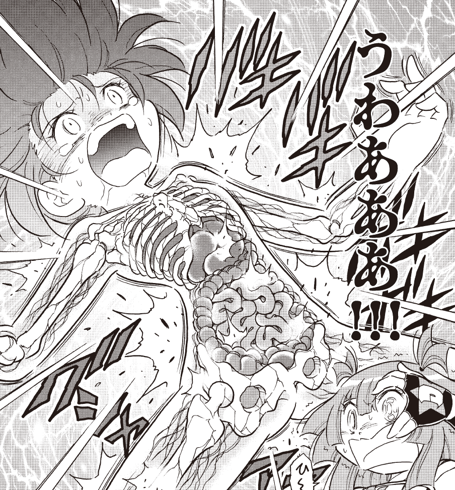 | … | 8826/03/10(火)09:39:18No.1409355712+普通ギャグ漫画や格闘漫画でも骨バキバキ描写はホネだけ描いて他はレントゲンみたいな黒塗りになるよね…なんで内蔵描いたの… |