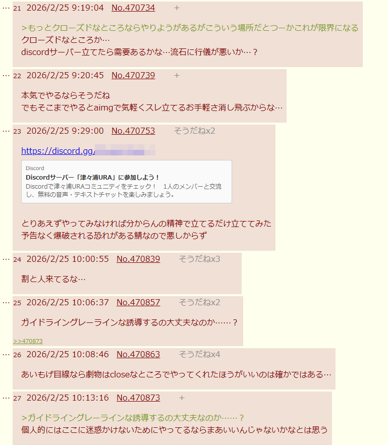 | … | 4126/03/10(火)09:29:32No.1409354396+>それよりあいもげのAI絵師がウマエロディスコ招待やってた話しようぜ あっちにいるようなのならこっちにもいる奴だろうし… |