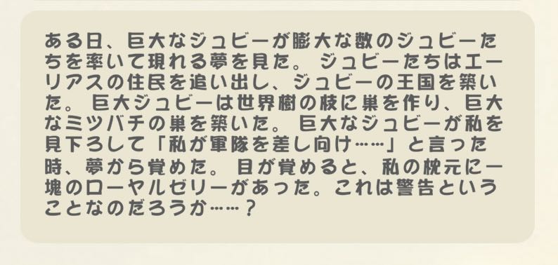 | … | 21726/03/10(火)14:18:41 ID:gI.presENo.1409412646+>クイーンジュビーとかいるんだろうかにゃん |