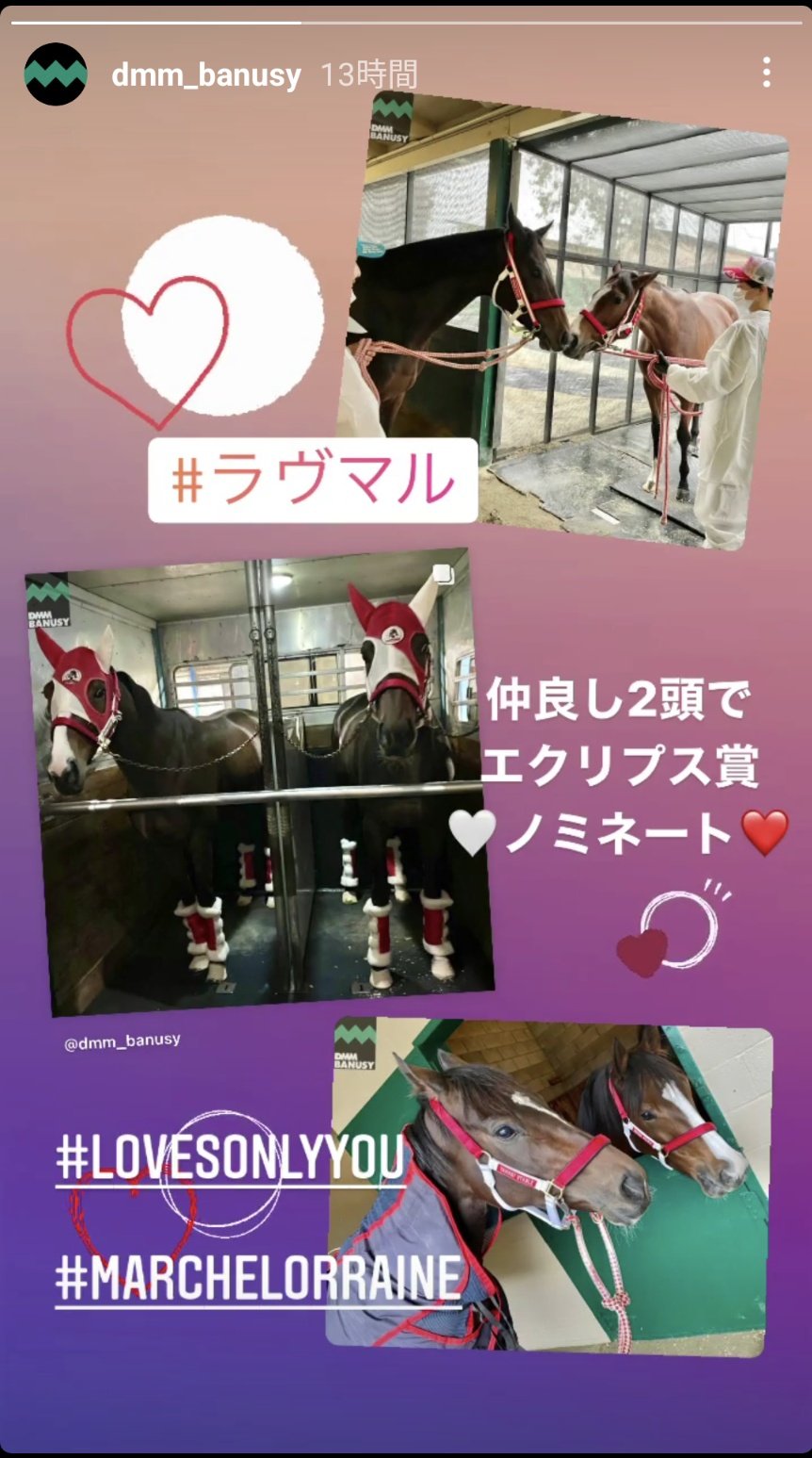 | … | 5826/03/10(火)14:23:27No.1409413606そうだねx12生まれてからずっと一緒の幼馴染で厩舎も一緒で初めて二人で遠征したのがブリーダーズカップでラヴズが現役最後に走ったのがマルシュと一緒の追い切りで〜ってちょっと盛り過ぎなくらいキテルエピソードばっかりなんだよね |