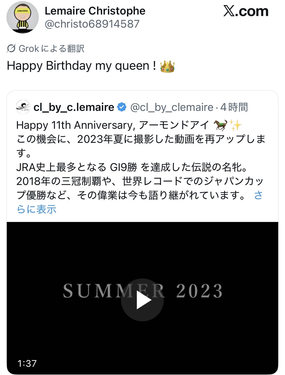 | … | 8026/03/10(火)17:12:29No.1409447118+ただルメールにはイクイノックスもいるんだよな…一回ジャパンカップで争ってほしい |