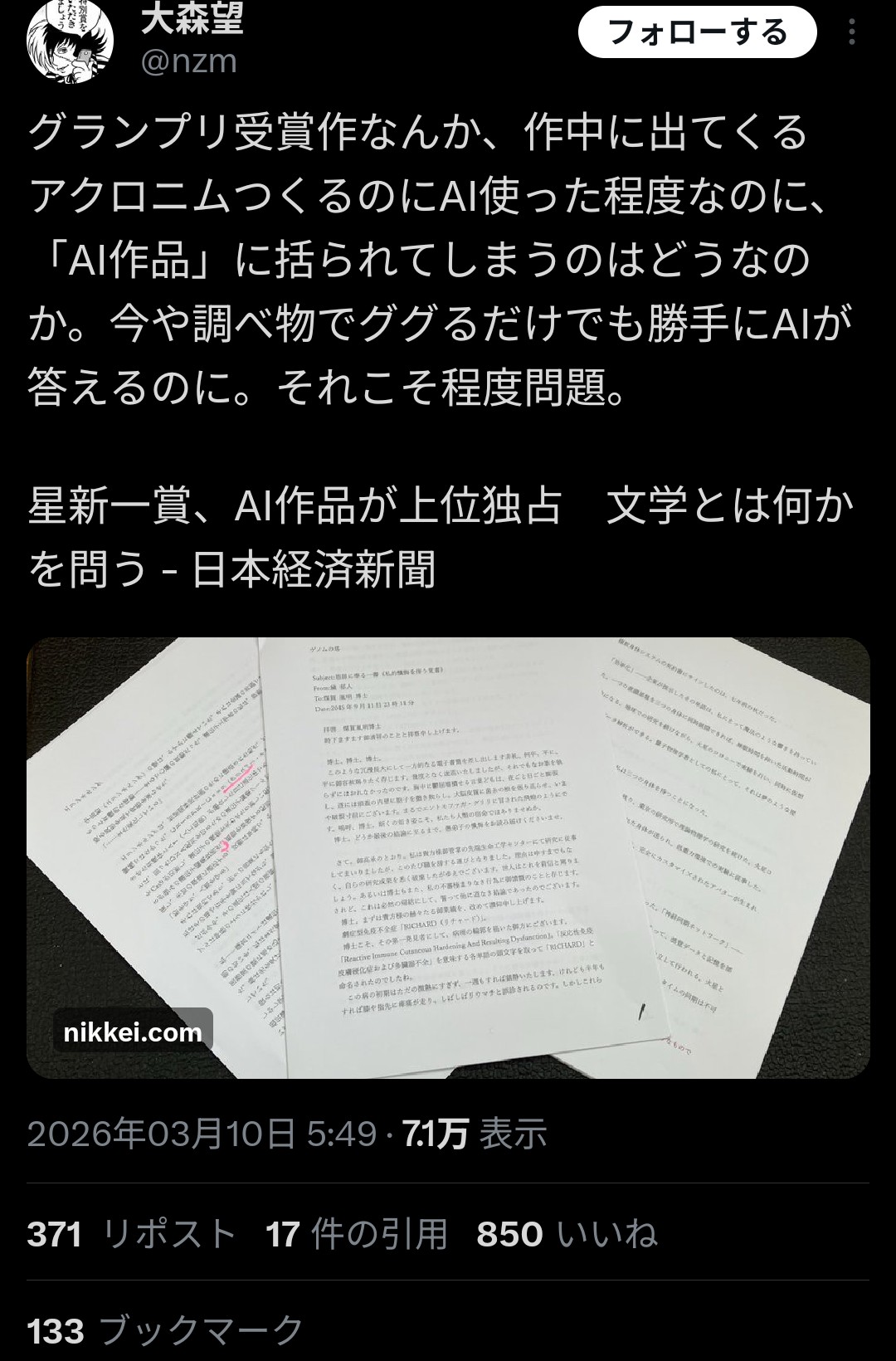 AIと小説の関係性は悪い意味で順調に中国の後追いしてんなぁ