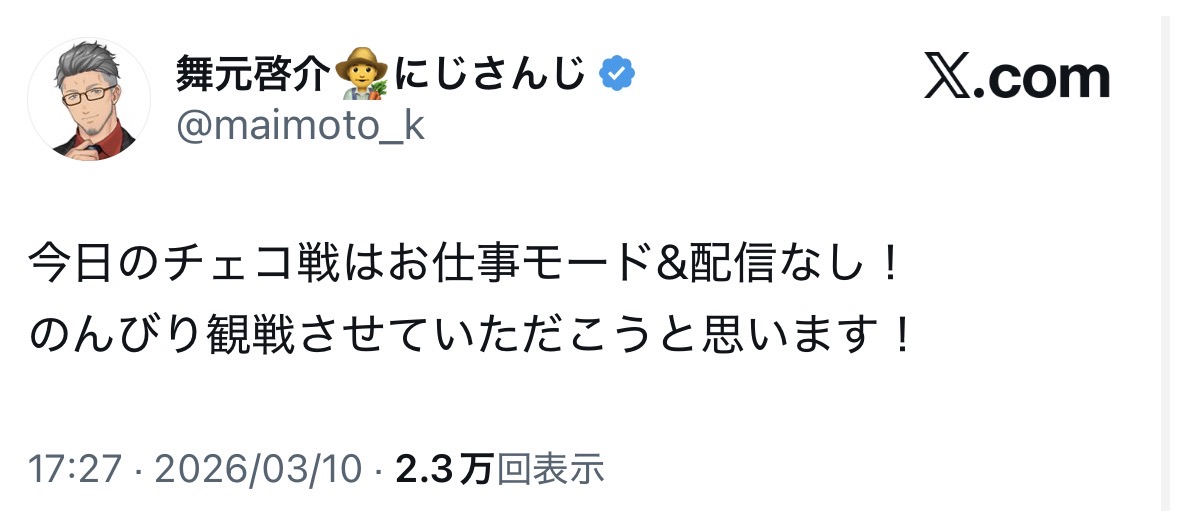 | … | 6026/03/10(火)20:38:44No.1409509391+>仕事モードと配信抜きでプライベートで観戦したいってことだろ |