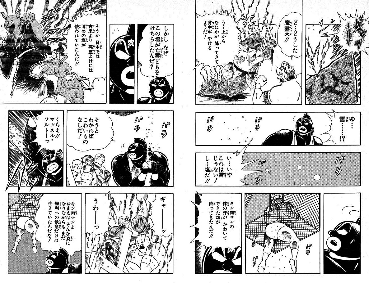 | … | 6326/03/11(水)00:31:56No.1409586830そうだねx1>レスラーが汗から精製した塩で相手の亡霊退散させちゃいけないってルールあるのかよ |