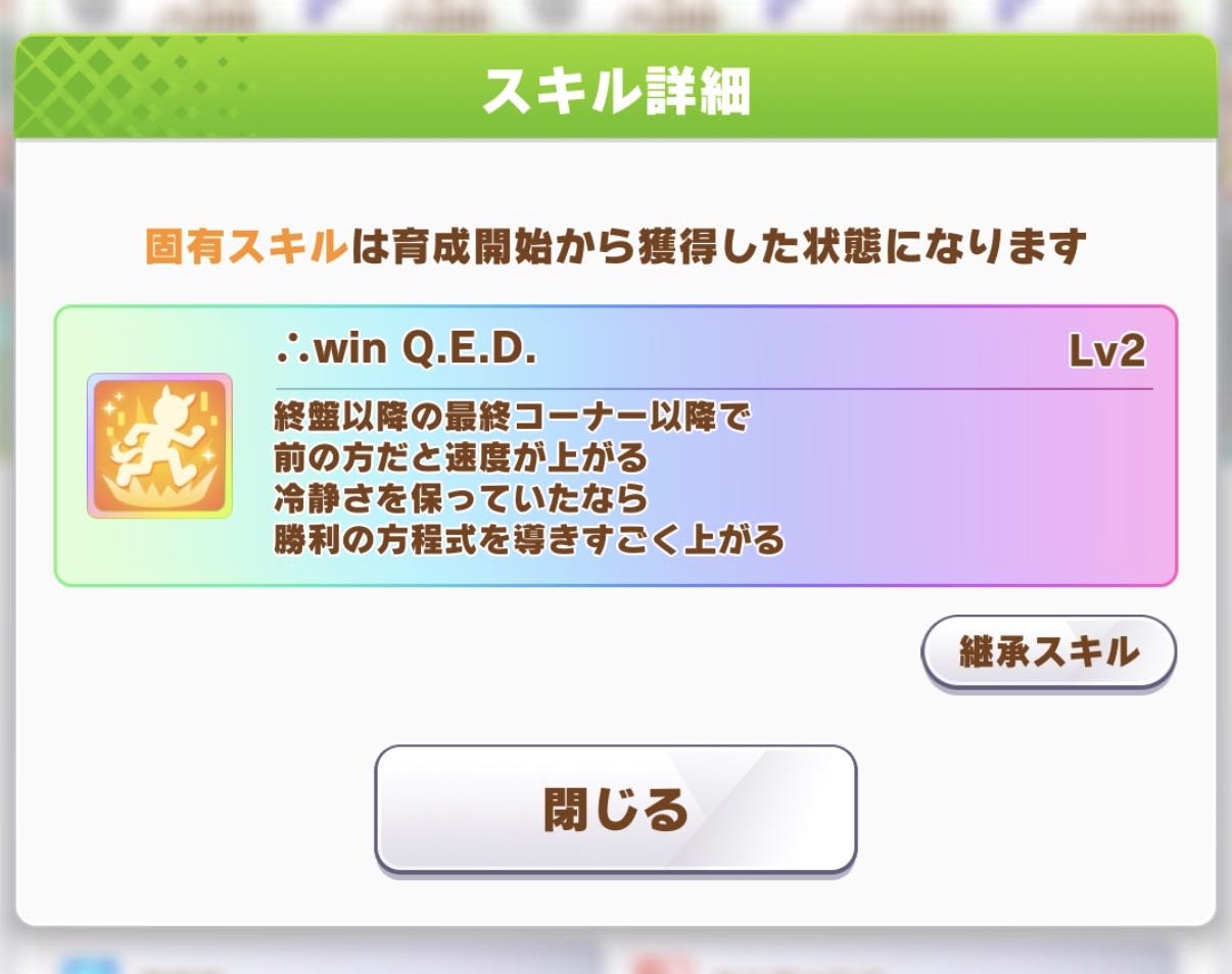 | … | 22826/03/11(水)10:58:31 ID:GV9CnMuYNo.1409654463そうだねx1初期のウマ娘の固有はフレーバーテキストが付いてるもんです |