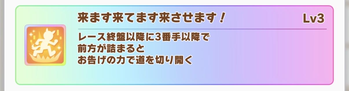 | … | 24326/03/11(水)11:07:04 ID:zRi/8FocNo.1409655978+フクの固有には他のウマ娘をレーン移動させる効果があるんですよね! |